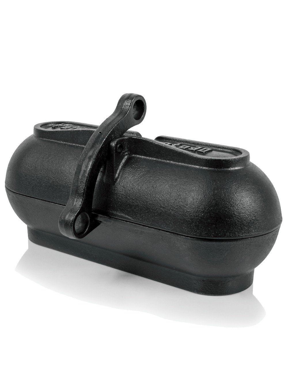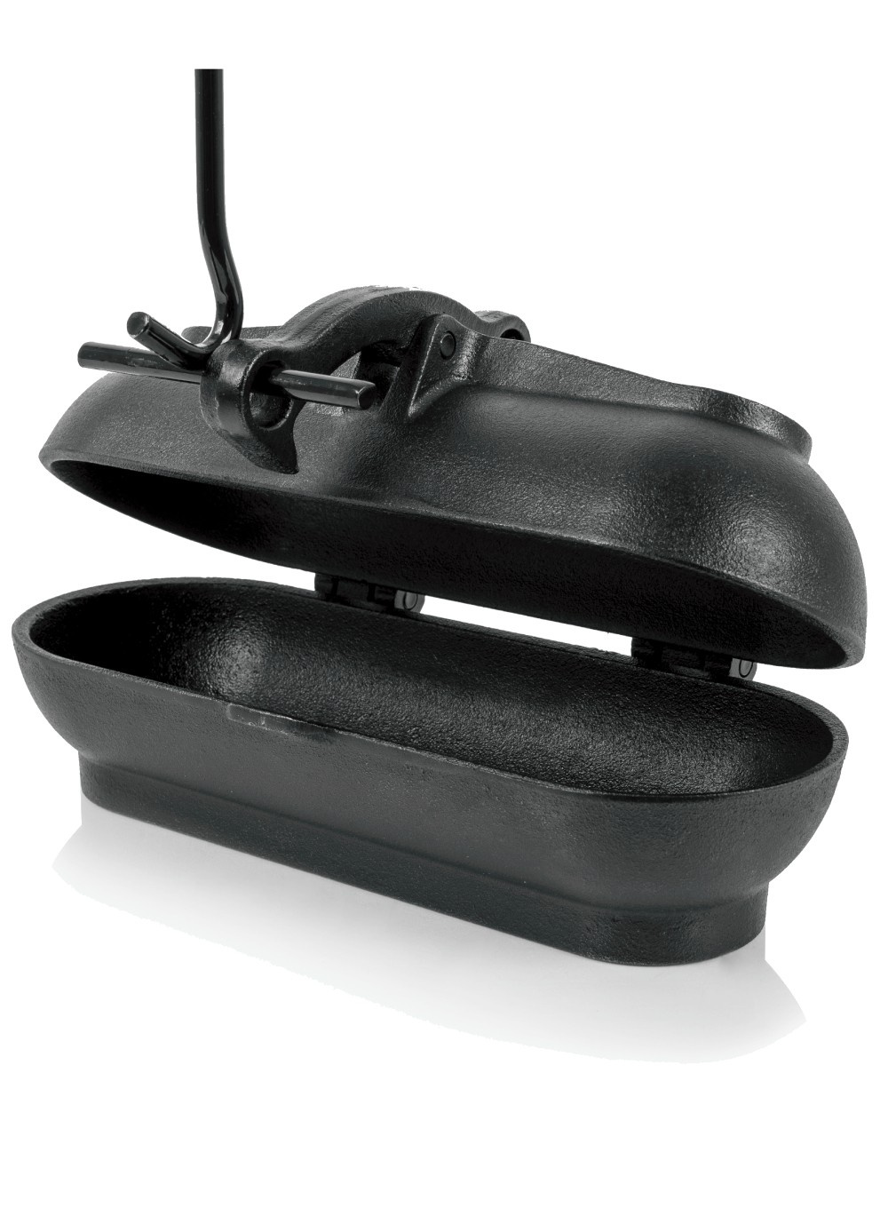 Petromax żeliwna brytfanna do ziemniaków 30 cm wyróżnia się sprytnym mechanizmem: specjalnie zaprojektowany zamek uchylny szczelnie zamyka obie połówki formy zaraz po podniesieniu ich za pomocą podnośnika pokrywy. Oznacza to, że możesz zdjąć lub przenieść gorącą brytfankę z ognia. Jeśli zaczepisz podnośnik pokrywy o dolny koniec zatrzasku uchylnego, możesz z łatwością otworzyć pokrywę brytfanny i podawać gotujące się na parze ziemniaki.