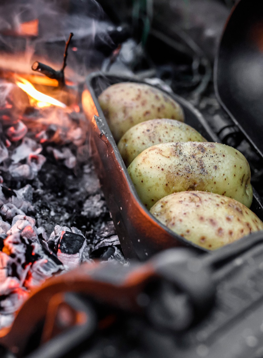 Ziemniaki pieczone na ognisku doskonale komponują się z przygodowym menu. W żeliwnej brytfannie do ziemniaków Petromax można przygotować ziemniaki i warzywa o charakterystycznym pieczonym smaku.