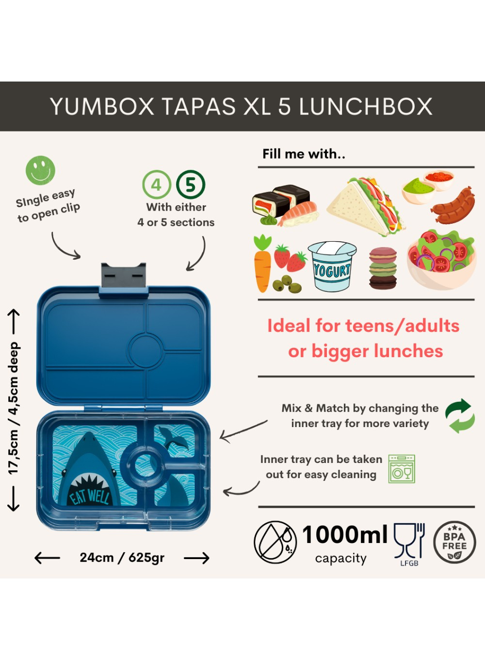 Lunchbox pojemnik na śniadanie XL Yumbox Tapas 4 - Monte Carlo blue / shark