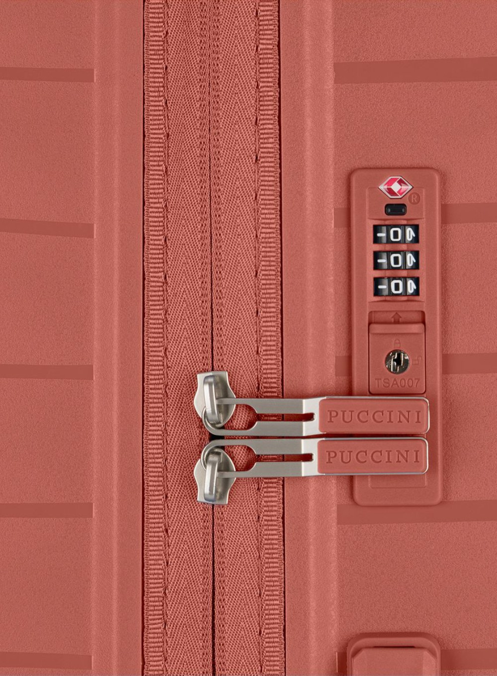 Walizki wykonane z polipropylenu charakteryzują się niską wagą, wytrzymałością i elastycznością. PUCCINI osiągnęło wyjątkowo wysokie wskaźniki jakościowe w tych trzech parametrach, co czyni ich walizki lekkimi, wygodnymi w transporcie, trwałymi i odpornymi na uszkodzenia.