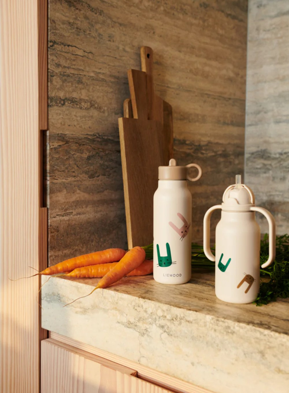 Przyjazna dla dzieci butelka termiczna na wodę Liewood Falk Water Bottle 350 ml, z małym uchwytem na pokrywce i składanym ustnikiem do wygodnego picia. Wykonana ze stali nierdzewnej klasy premium utrzymuje temperaturę napoju przez wiele godzin.