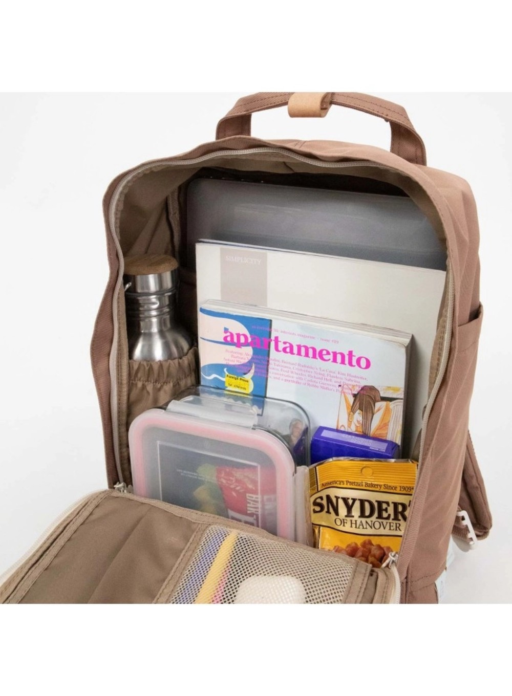 Główna komora otwiera się niemal na całą szerokość plecaka, co pozwala na dotarcie do rzeczy umiejscowionych na dnie. Wewnątrz znajduje się otwarta kieszeń na notebooka, bądź tablet oraz mniejsze kieszonki na drobiazgi. Szerokie uchwyty na górze z dodatkową skórzaną klamerką, zapinaną na zatrzask, pozwalają nosić plecak w dłoni.