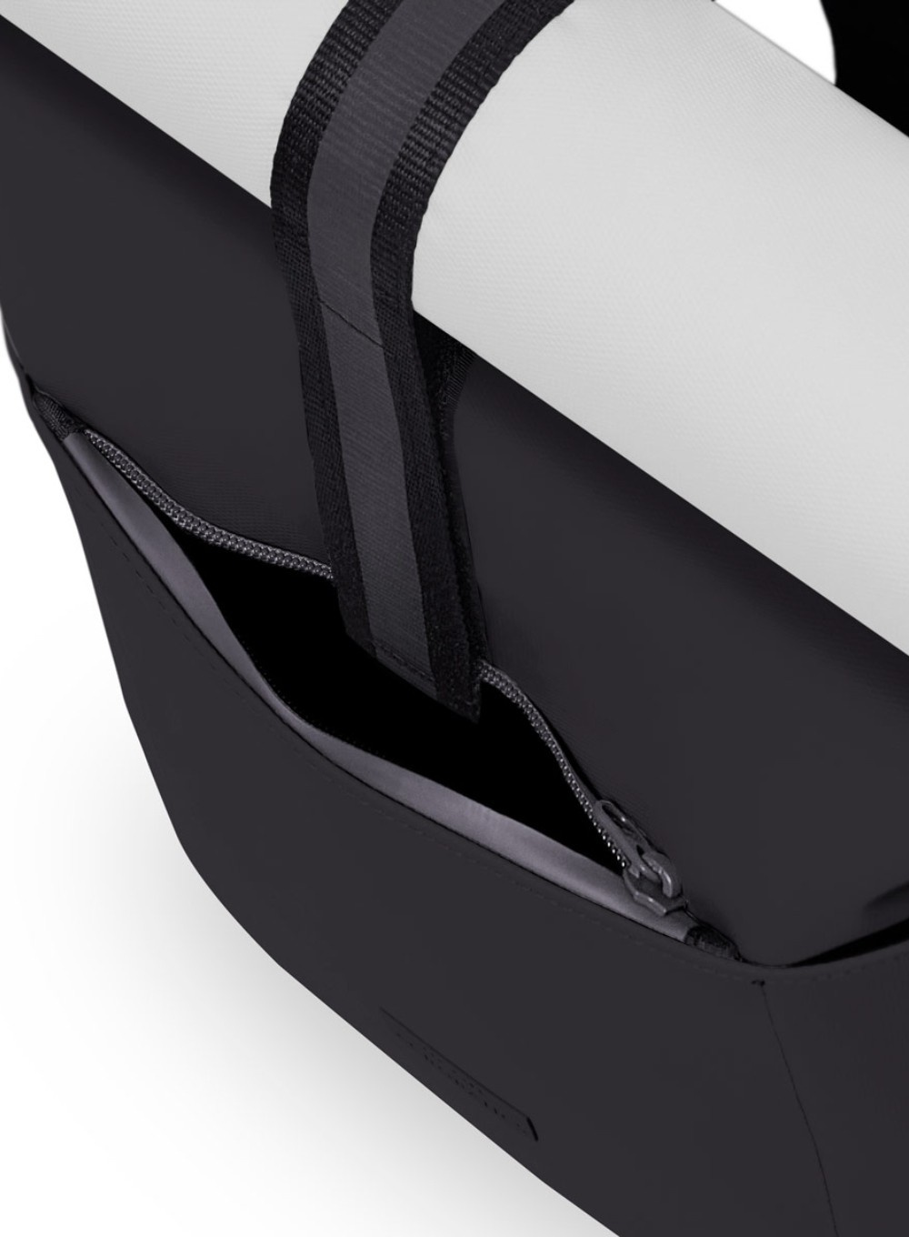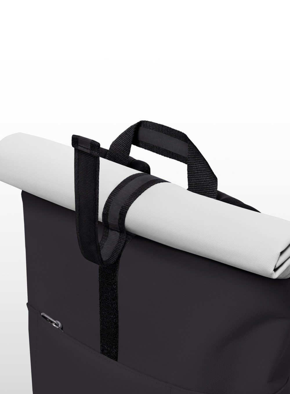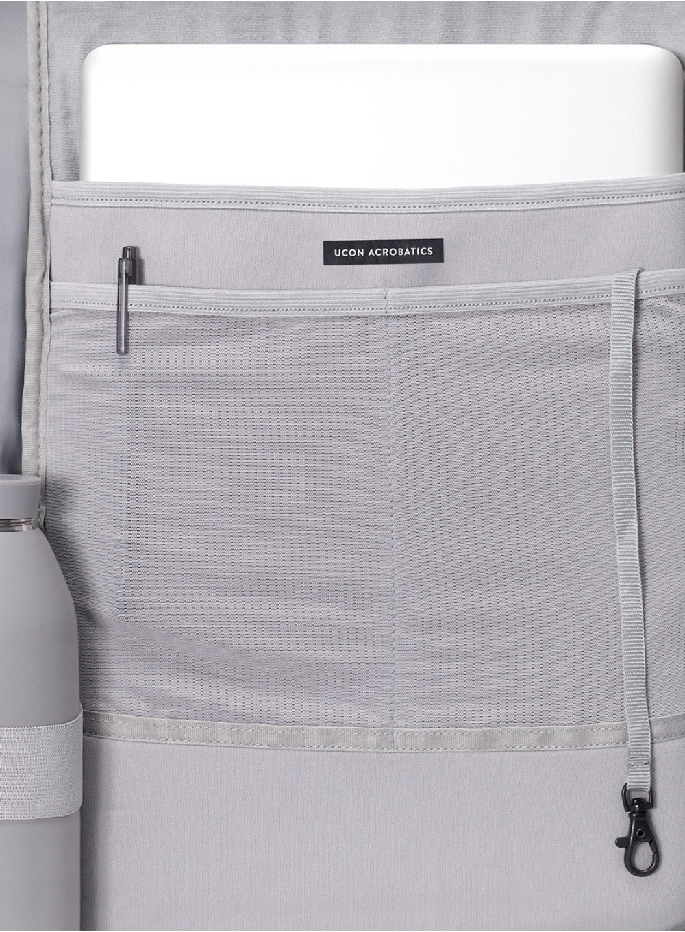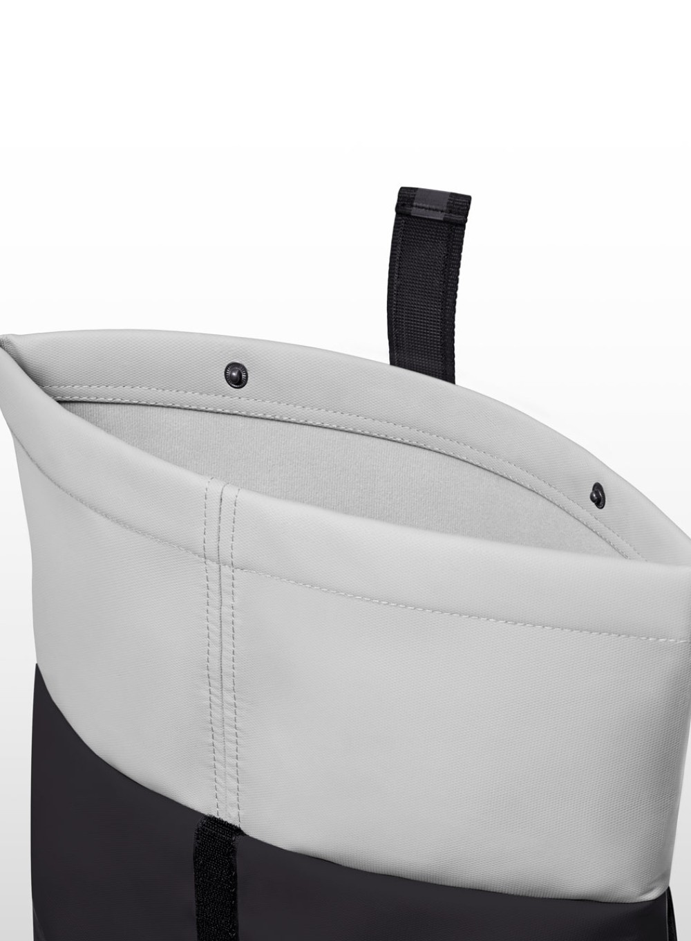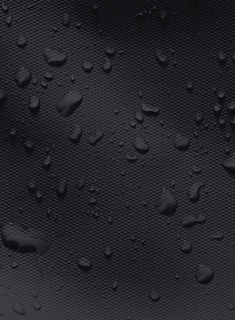 Specjalnie opracowana techniczna powłoka PU zapewnia ochronę przed deszczem i brudem. Korpus wykonany jest z materiału Oxford 900D wykonanego z PET na bazie przetworzonych plastikowych butelek. Jest wyposażony w wodoodporne powłoki - na zewnątrz z warstwą PU, a wewnątrz z wytrzymałą folią TPU. Ponadto wnętrze zostało wykonane z szarego Nylexu, materiału o wysokim kontraście, który zapewnia, że Twoje drobiazgi nie znikną w czarnej dziurze.