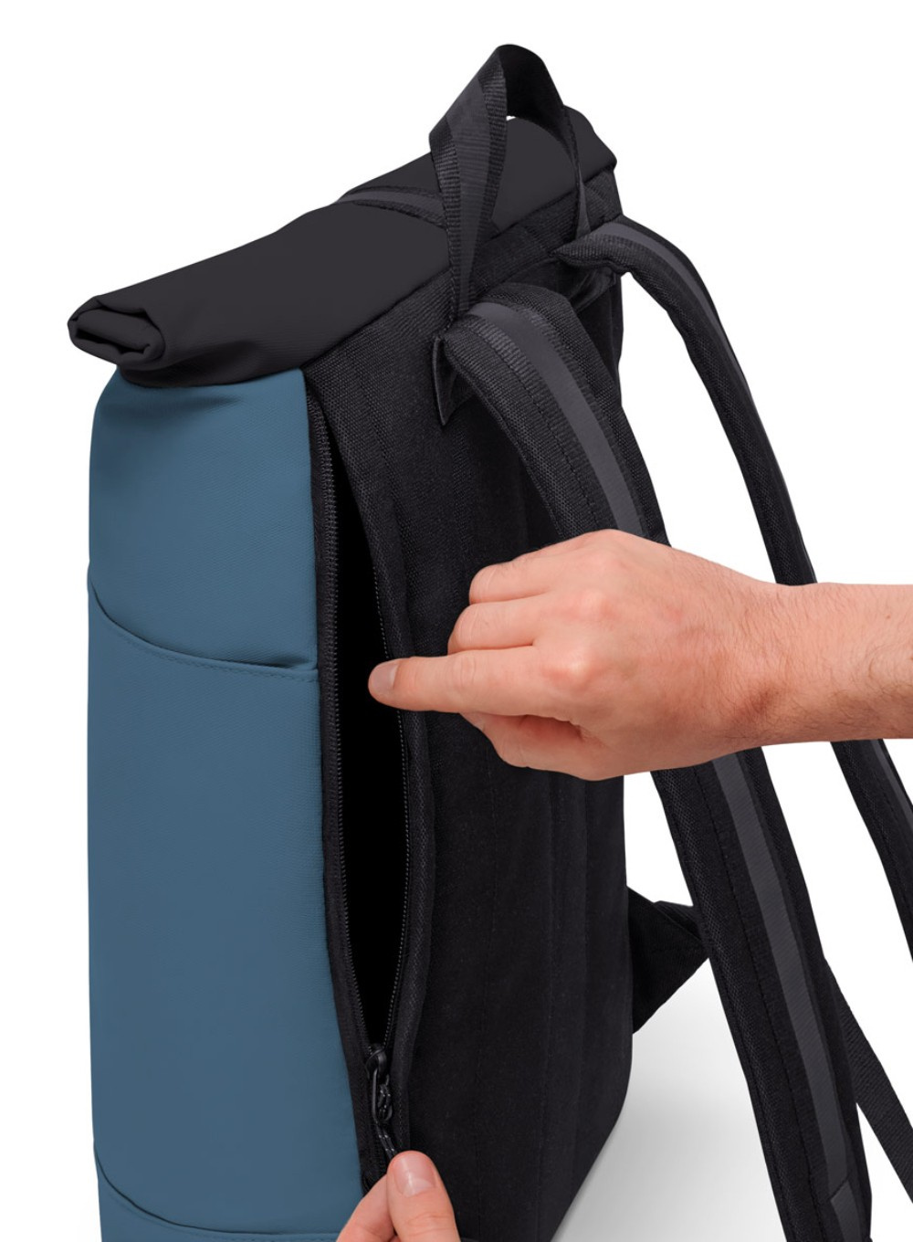 Specjalnie opracowana techniczna powłoka PU zapewnia ochronę przed deszczem i brudem. Korpus wykonany jest z materiału Oxford 900D wykonanego z PET na bazie przetworzonych plastikowych butelek. Jest wyposażony w wodoodporne powłoki - na zewnątrz z warstwą PU, a wewnątrz z wytrzymałą folią TPU. Ponadto wnętrze zostało wykonane z szarego Nylexu, materiału o wysokim kontraście, który zapewnia, że Twoje drobiazgi nie znikną w czarnej dziurze.