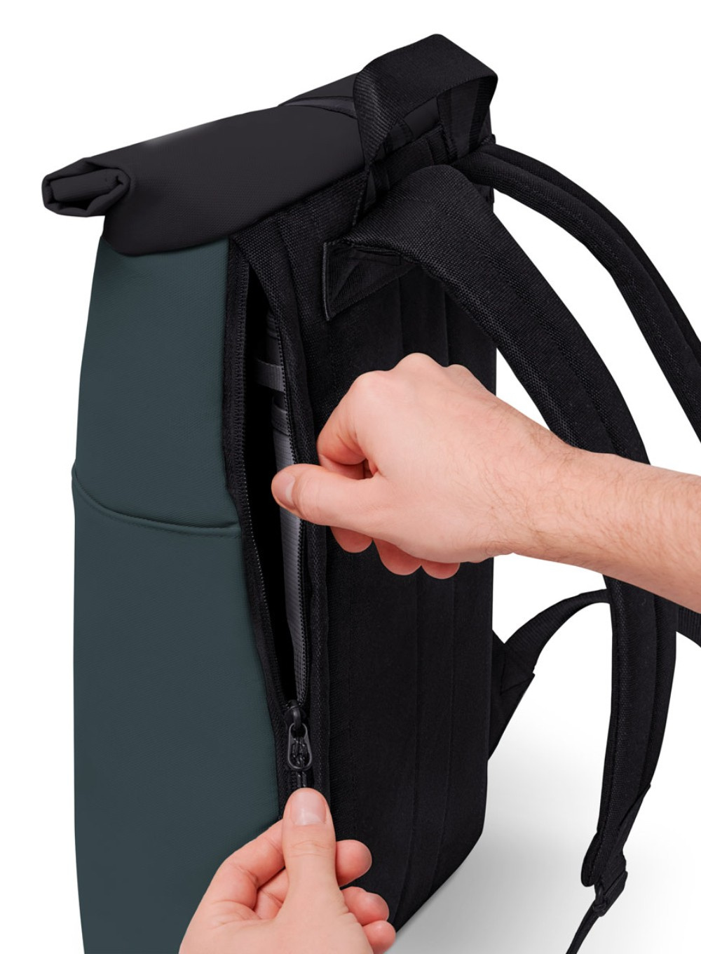 Specjalnie opracowana techniczna powłoka PU zapewnia ochronę przed deszczem i brudem. Korpus wykonany jest z materiału Oxford 900D wykonanego z PET na bazie przetworzonych plastikowych butelek. Jest wyposażony w wodoodporne powłoki - na zewnątrz z warstwą PU, a wewnątrz z wytrzymałą folią TPU. Ponadto wnętrze zostało wykonane z szarego Nylexu, materiału o wysokim kontraście, który zapewnia, że ​​Twoje drobiazgi nie znikną w czarnej dziurze.