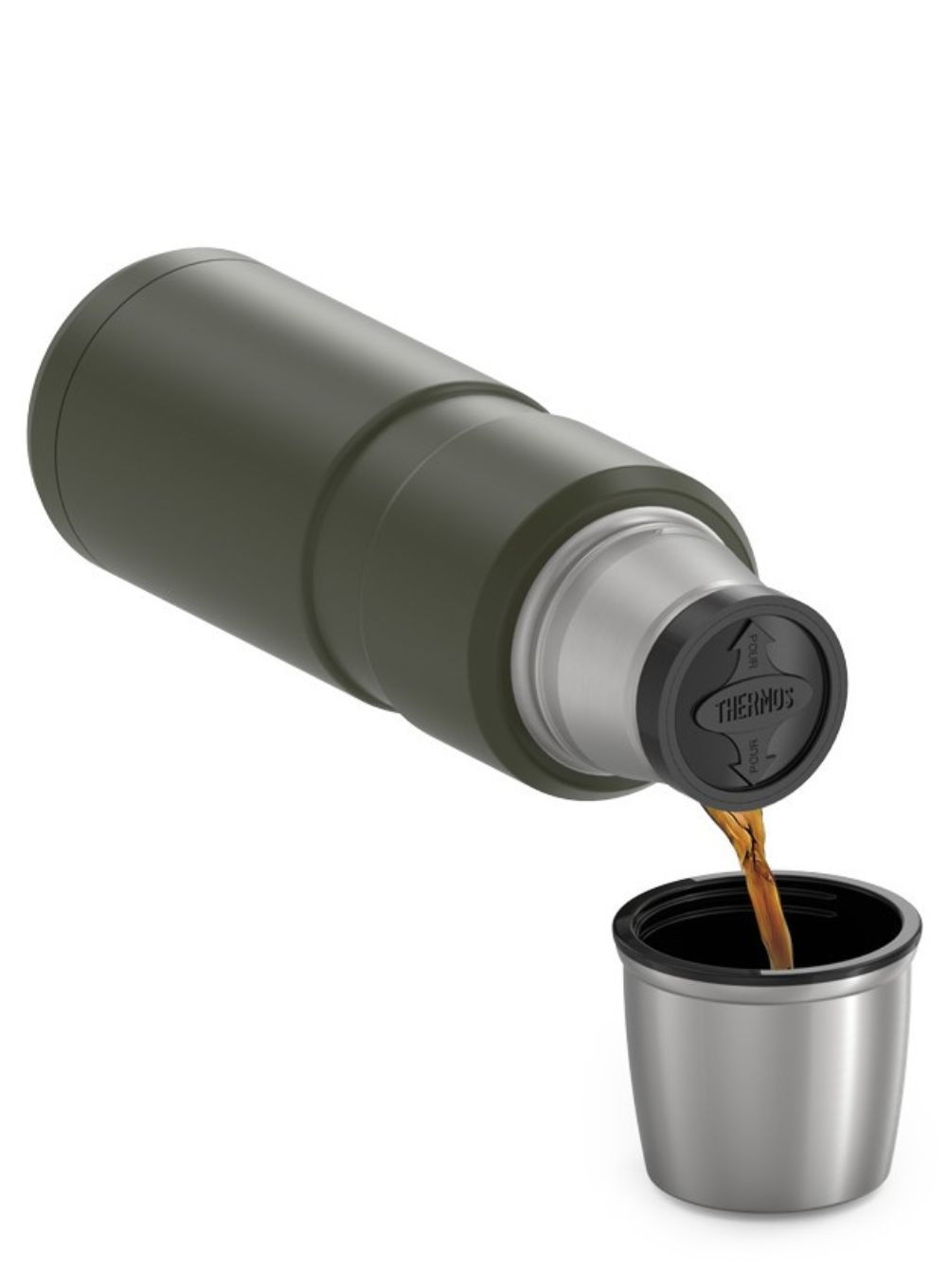 Izolowany próżniowo termos ze stali nierdzewnej na napoje ze stylowym designem. Korpus termosu wykonany jest z wysokiej jakości stali nierdzewnej. Między ścianami termosu jest izolacja próżniowa. Ujście termosu uszczelnia nakrętka, która ma kształt pozwalający na spokojny przepływ napoju. Kształt nakrętki zapewnia łatwe otwieranie/zamykanie termosu. Zewnętrzna strona kubka wykonana jest ze stali nierdzewnej, wewnętrzna strona z wytrzymałego plastiku. System jako całość osiąga doskonałe właściwości izolacyjne.