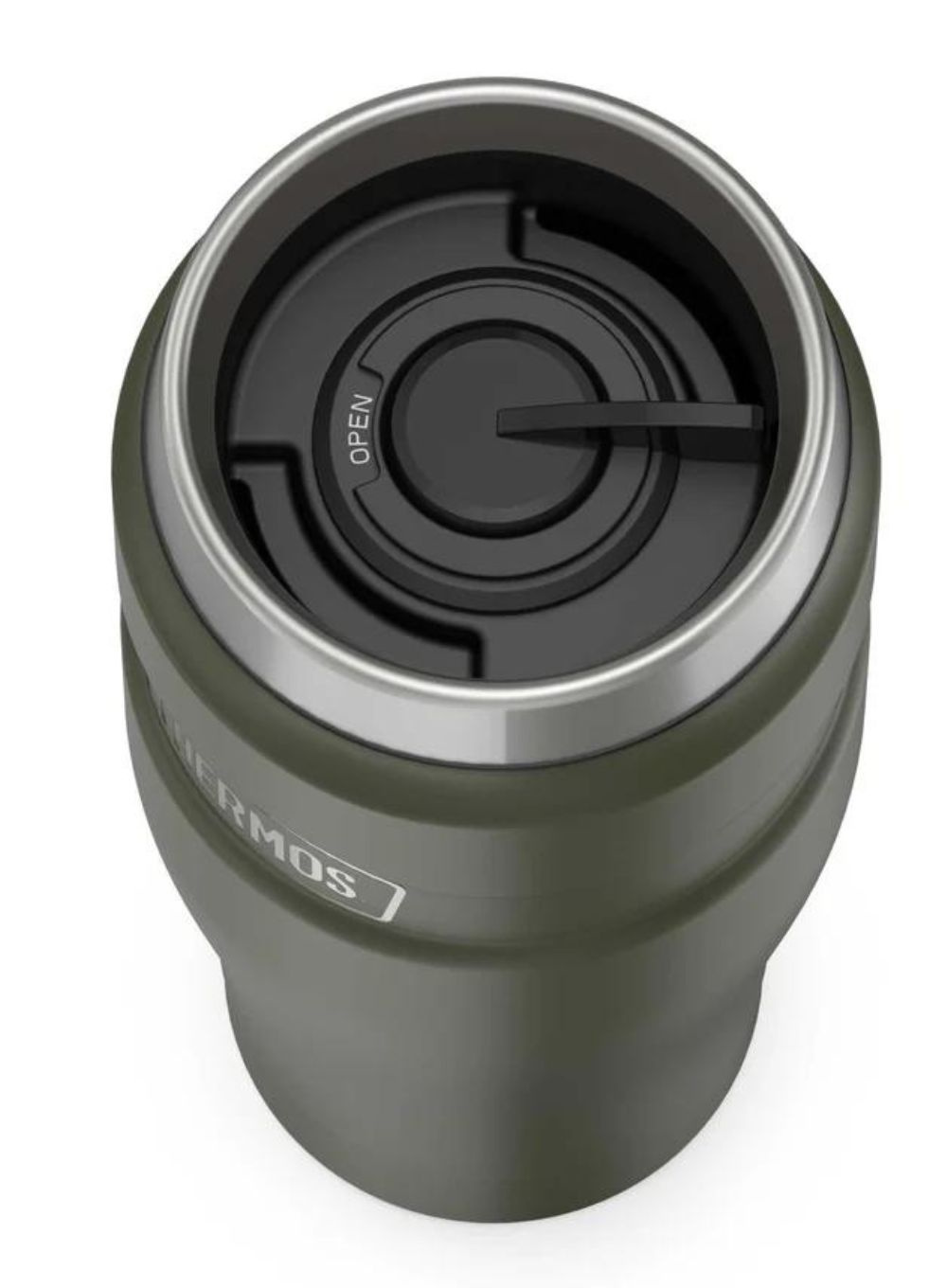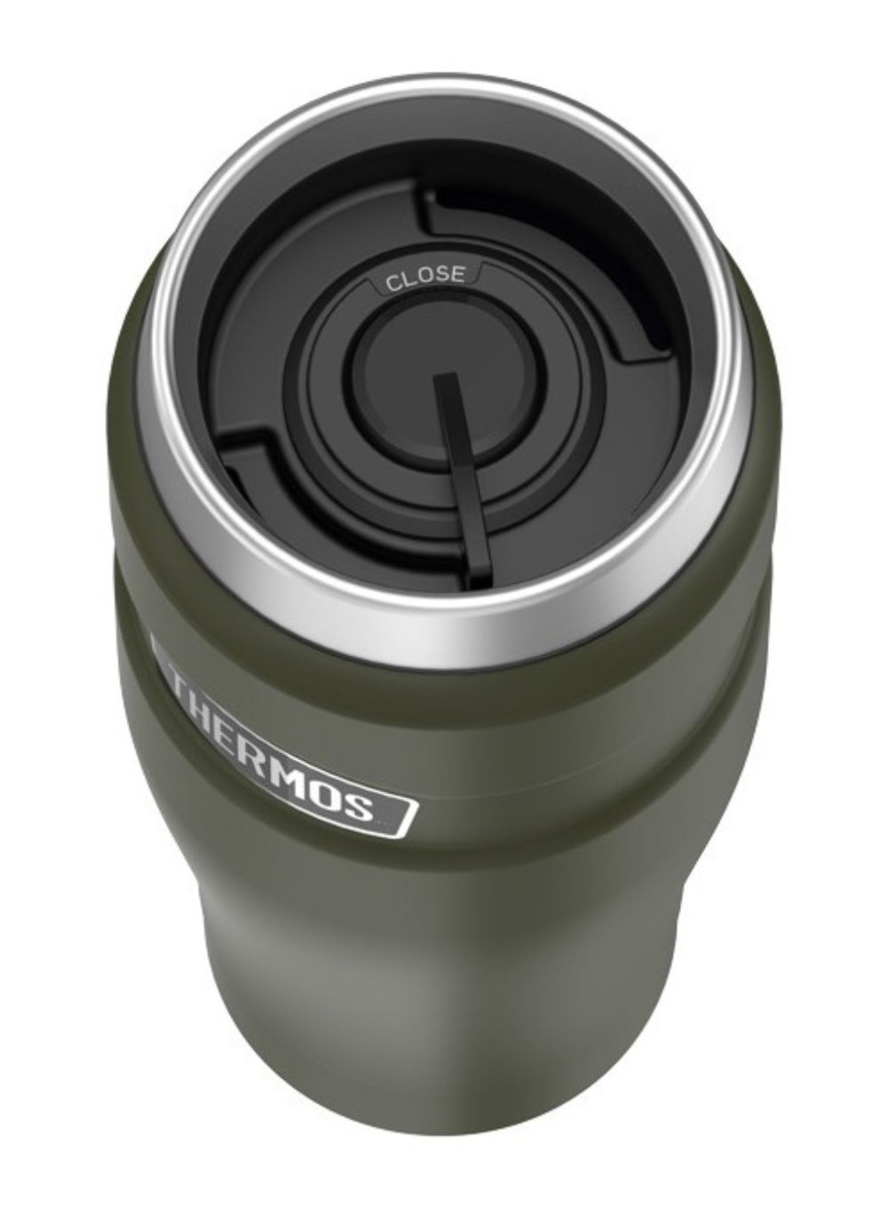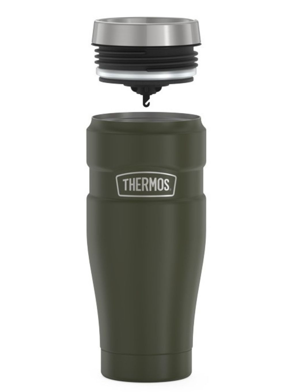 Solidnie wykonany podróżny kubek termiczny Thermos Stainless King™ 470 ml o podwójnych ściankach, dzięki technologii izolacji próżniowej Thermos™ bez problemu utrzymuje wysoką lun niską temperaturę płynu. Dzięki szczelnej i niezawodnej pokrywie DrinkLock™, masz pewność, że nic się nie rozleje. Pokrywa posiada specjalny, wbudowany haczyk do parzenia herbaty ekspresowej albo liściastej.