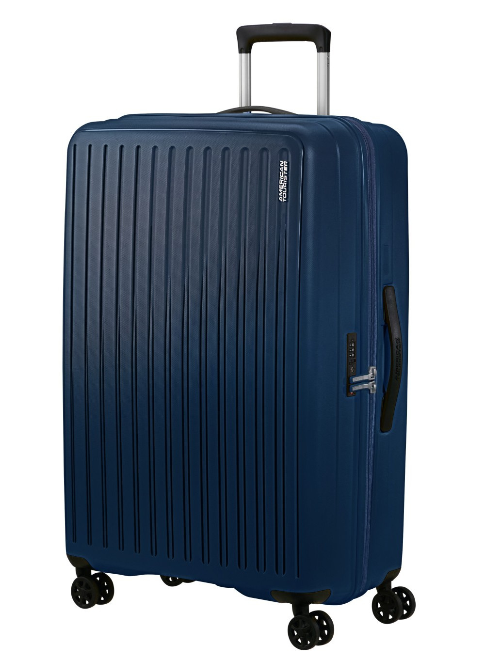 Duża walizka American Tourister Rejoy na 4 kołach, ma wbudowany zamek szyfrowy TSA, pojemne wnętrze i wystarczy dla jednego podróżnika nawet na 3-tygodniową podróż.
