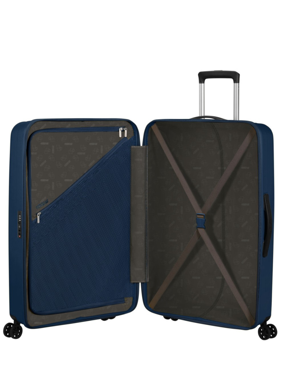 Duża walizka American Tourister Rejoy ma 2 wyściełane komory, które pomieszczą niezbędną odzież, obuwie, kosmetyki i różne akcesoria.