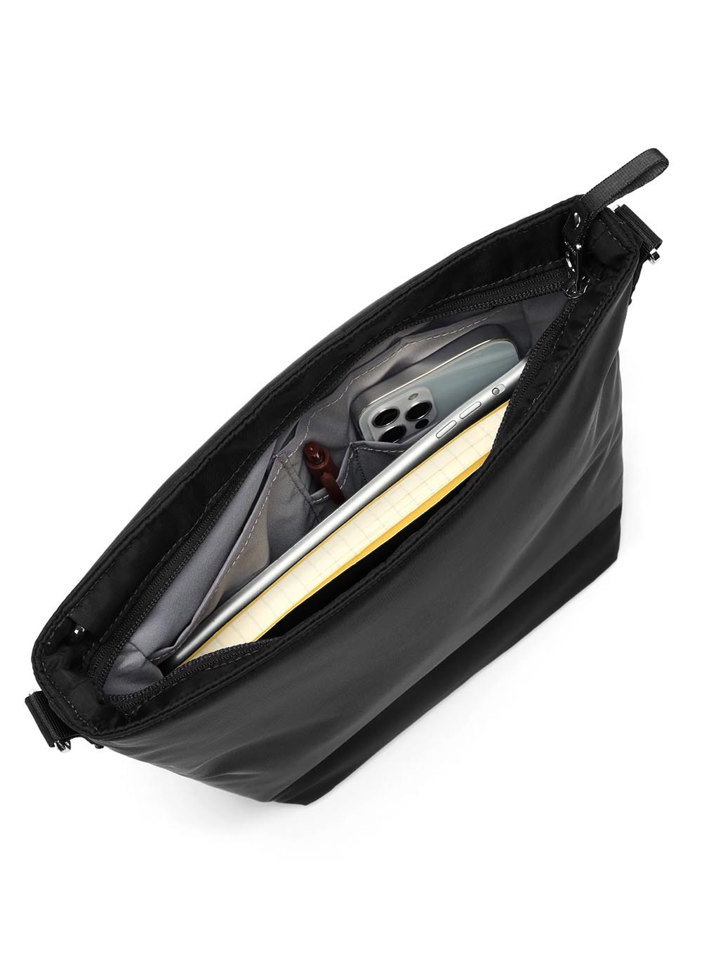 Damska torebka na ramię Pacsafe® W Anti-theft Crossbody, uszyta z ,materiału z recyklingu, o pojemności 3 l. Idealny towarzysz do użytku dziennego i nocnego.