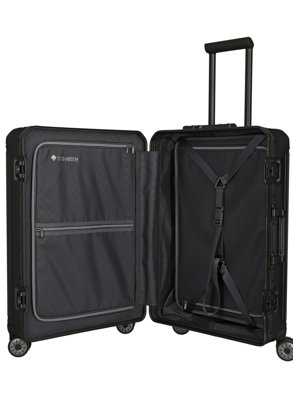 Co sprawia, że ​​jest dobrym partnerem w podróży? Solidność, rzetelność i dużo talentu organizacyjnego. Walizka Travelite Next Trolley  M zdobywa punkty na całej planszy. Przede wszystkim stabilna konstrukcja ramy z wysokiej jakości aluminium premium i wiele innych elementów bezpieczeństwa.