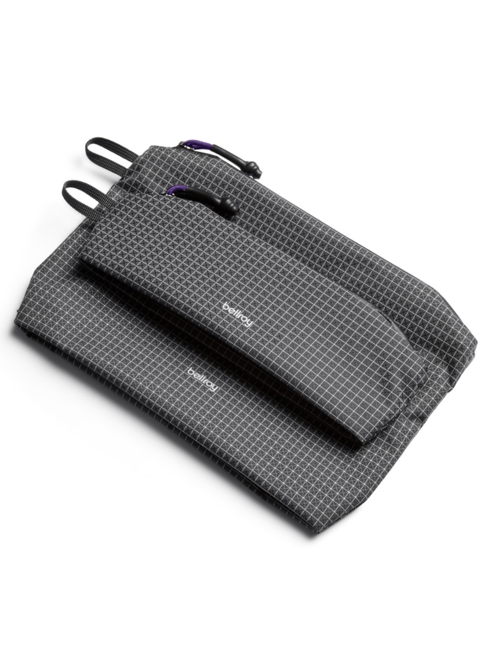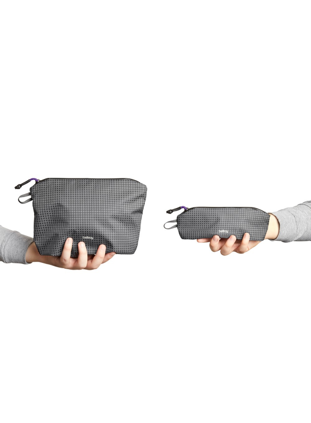 Saszetki wykonane są z materiału ripstop z recyklingu, który waży trzy razy mniej niż standardowe tkaniny marki Bellroy, dzięki czemu są lekkie jak piórko.