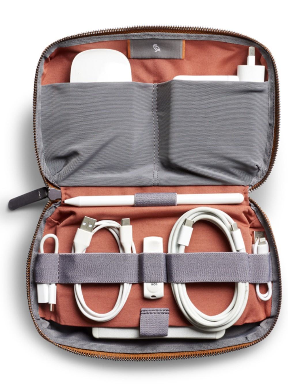 Zorganizuj swoje akcesoria technologiczne bez splątanych kabli. Pojemny organizer na elektronikę i kable Bellroy Tech Kit pomaga utrzymać porządek i wszystko na swoim miejscu.