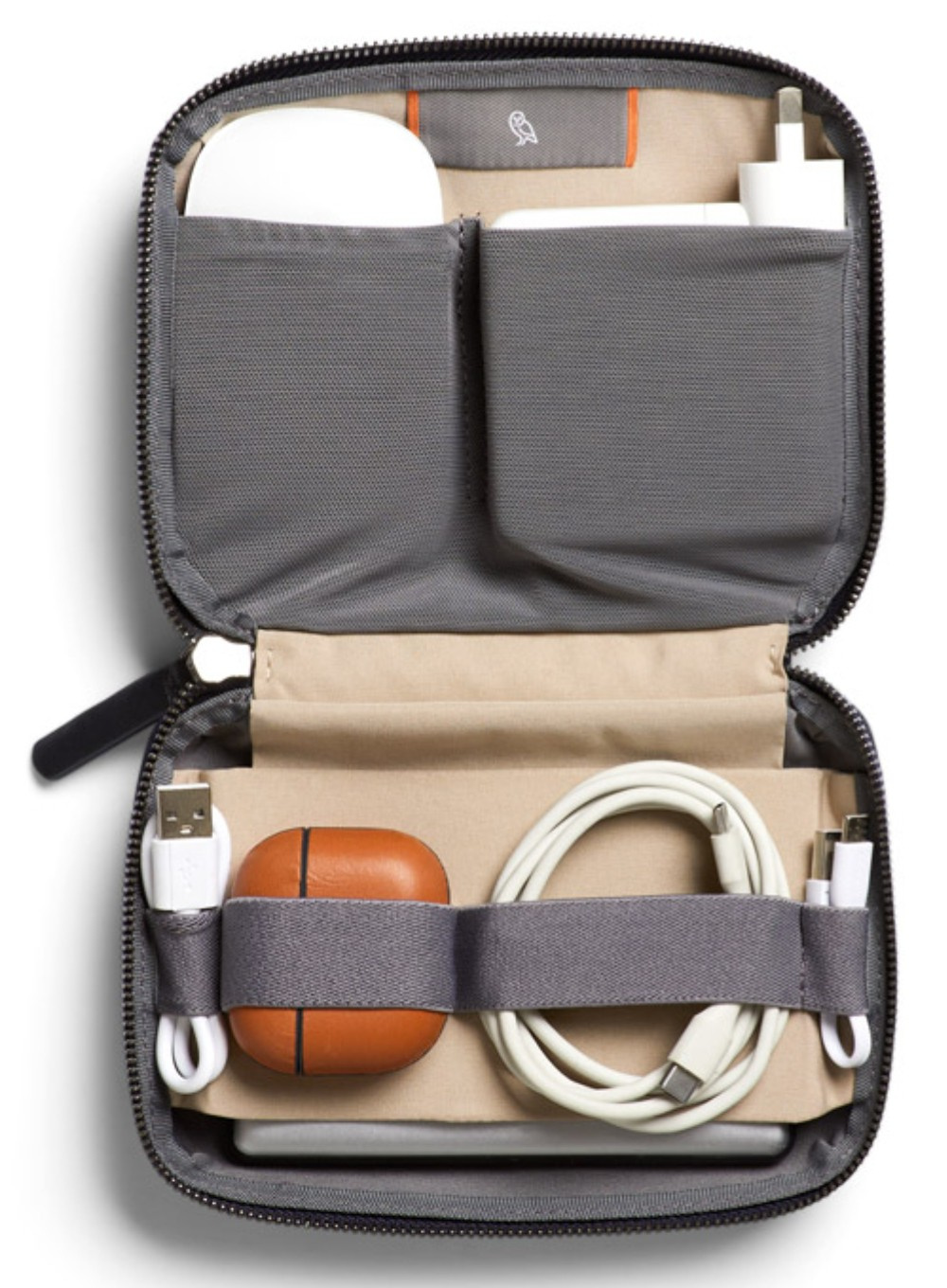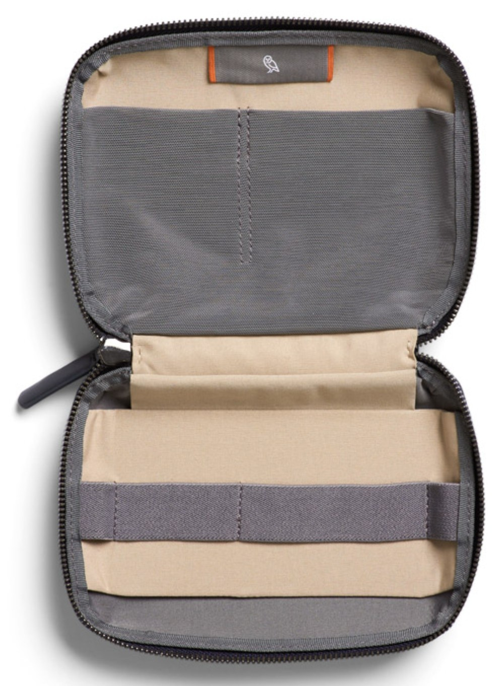 Zasuwany organizer Bellroy Tech Kit Compact oferuje dużo miejsca do łatwej organizacji, nie zajmując jednocześnie zbyt wiele miejsca w torbie.