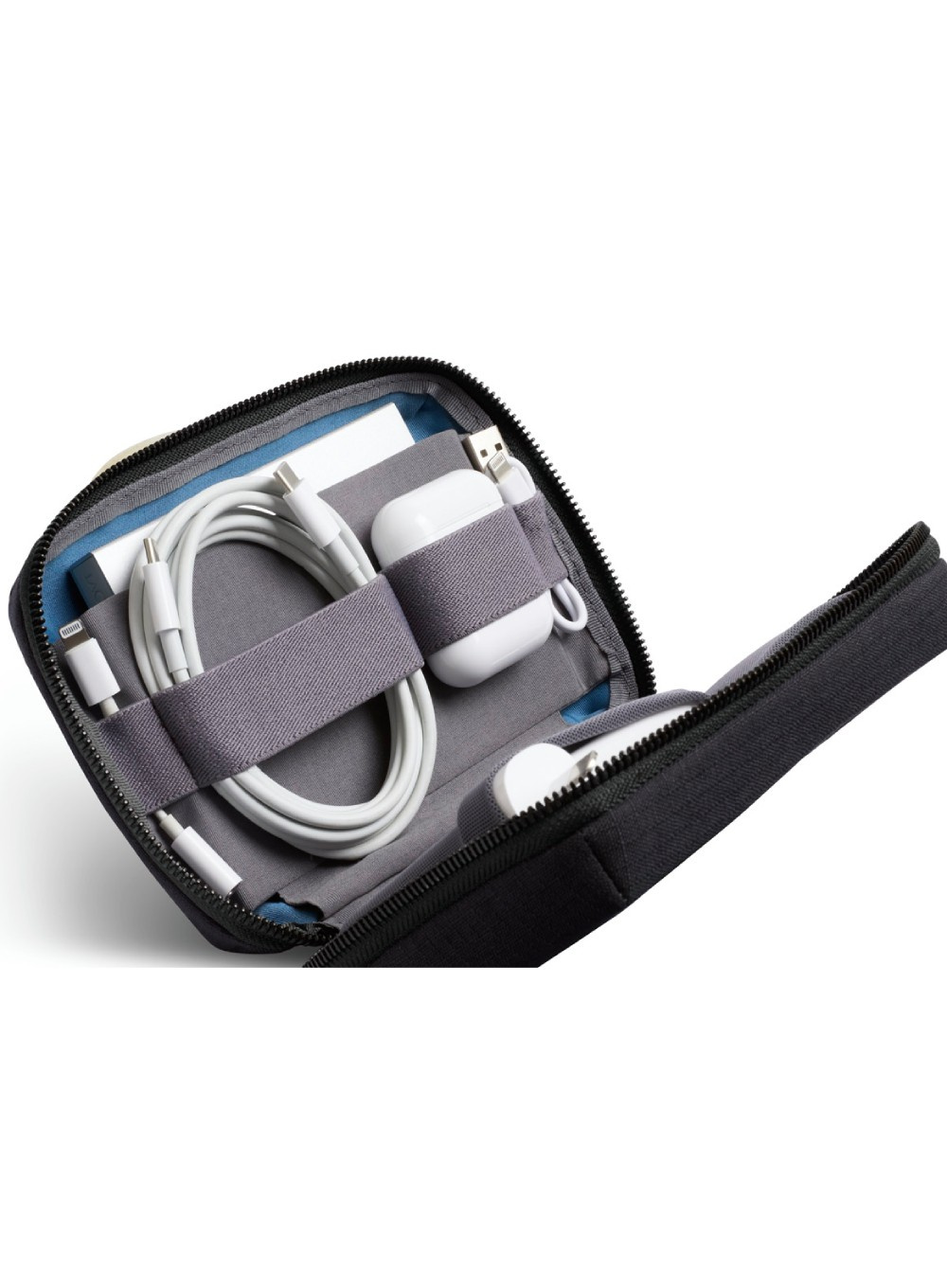 Zasuwany organizer Bellroy Tech Kit Compact oferuje dużo miejsca do łatwej organizacji, nie zajmując jednocześnie zbyt wiele miejsca w torbie.