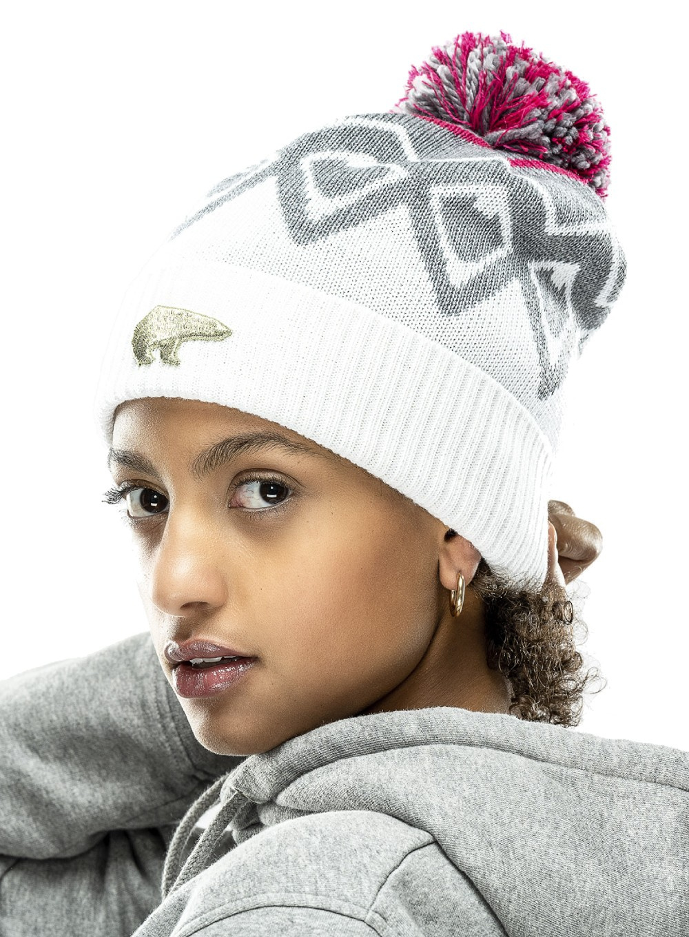 Zimowa czapka z pomponem Eisbar Ziggy OS Pompon to idealny wybór dla miłośników nostalgicznych trendów z lat 80-tych. Jej charakterystyczny, ząbkowany wzór oraz wielokolorowy, puszysty pompon wprowadzają radosny klimat, który od razu przyciąga wzrok. Wyszywane logo polarnego misia dodaje czapce unikalnego uroku, tworząc produkt, który łączy w sobie modę i funkcjonalność.