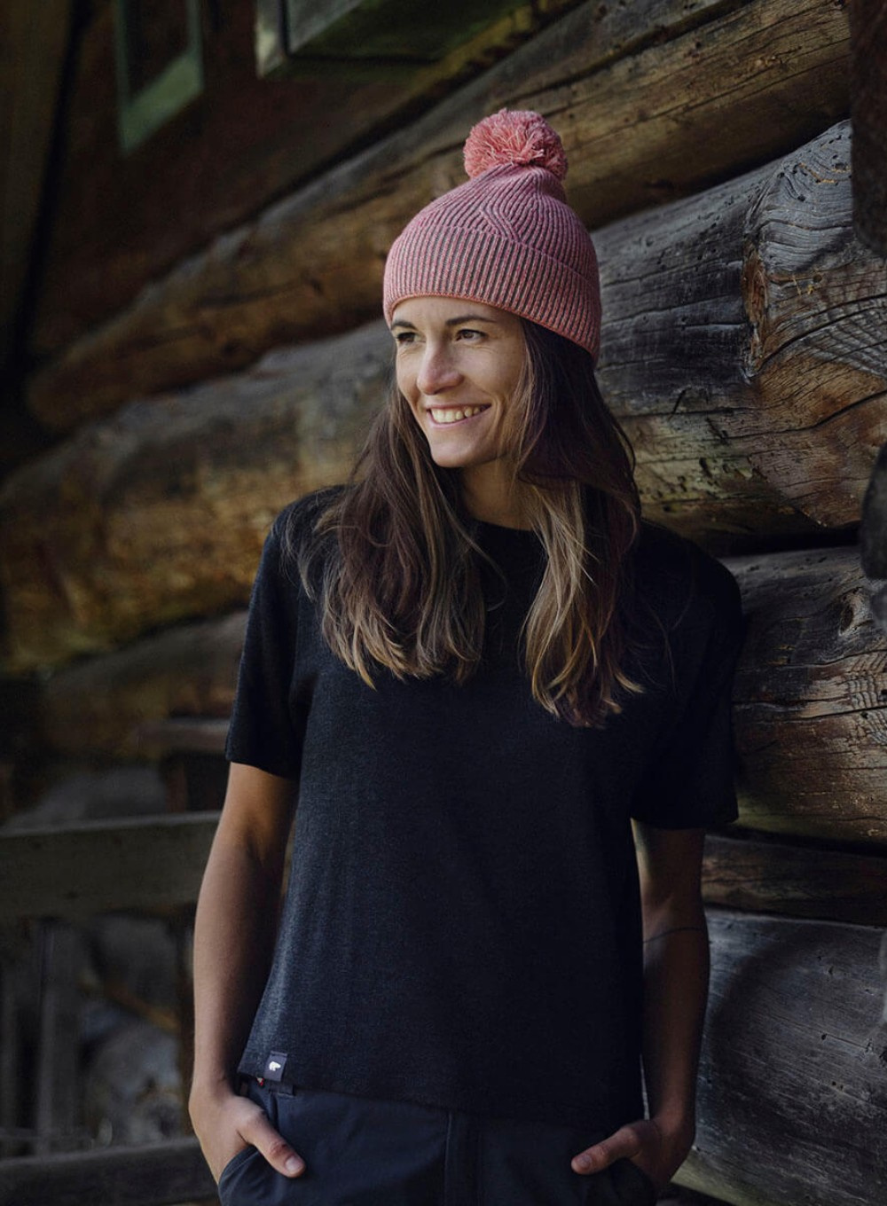• Materiał: wełna merino 48%, poliakryl 48%, elastan 4%; pompon: mikro modal 50%, wełna 23%, wełna z recyklingu 12%, poliamid z recyklingu 15%
