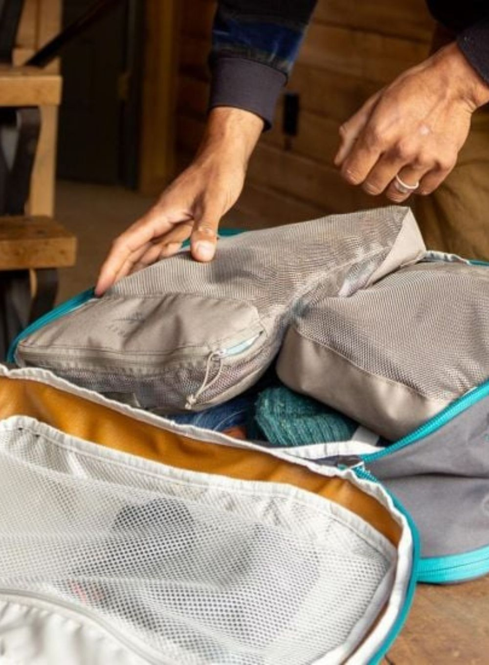 Oddychająca konstrukcja organizerów z siateczkowymi panelami, pozwala na zachowanie świeżości ubrań, umożliwia łatwe sprawdzenie zawartości, a różne rozmiary umożliwiają ich idealne dopasowanie do plecaka lub walizki.
