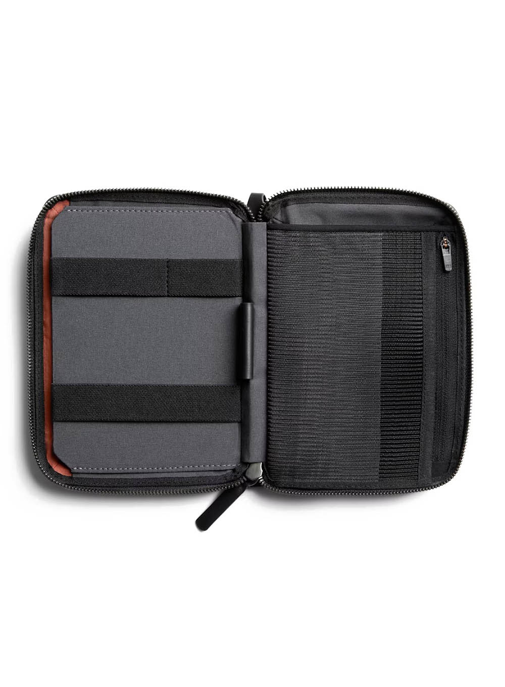 Organizer Bellroy Wonder Kit posiada dużą tylną kieszeń na notatniki, paszporty lub power bank oraz liczne wewnętrzne kieszonki i elastyczne pętle, które pozwalają na uporządkowanie zawartości lub wrzucenie wszystkiego „na szybko”.