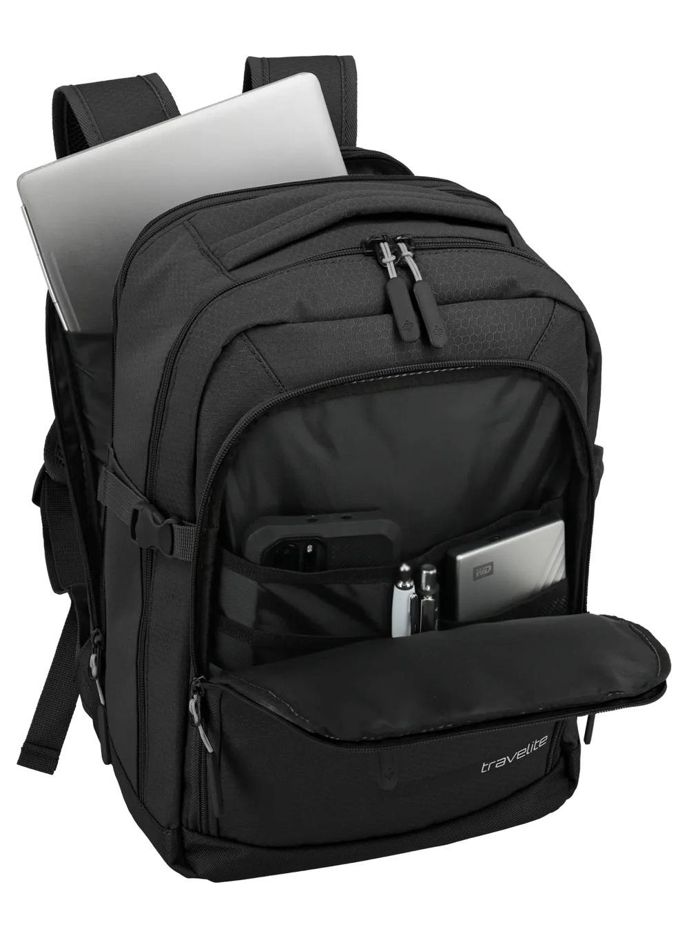 Przyjazny w kabinie i pełen funkcjonalnych możliwości - poszerzany plecak kabinowy Travelite Kick Off.