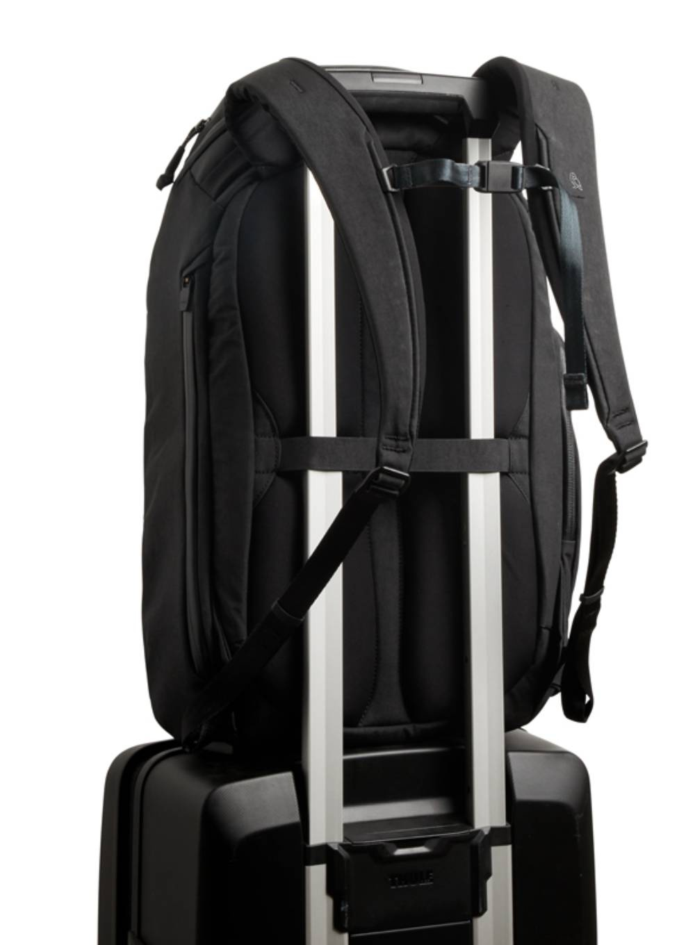 Dla większej wygody plecak posiada przelotkę umożliwiającą zamocowanie na walizce oraz regulowane paski naramienne z pasem mostkowym. Wykonany z wytrzymałych materiałów nylonowych pochodzących z recyklingu, oferuje trwałość i odporność na warunki atmosferyczne.