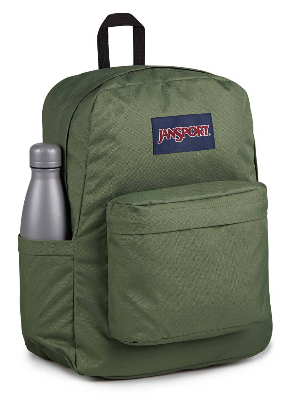 Plecak JanSport SuperBrak Plus to klasyczny model dla uczniów z przegrodą na laptopa i kieszenią na butelkę.