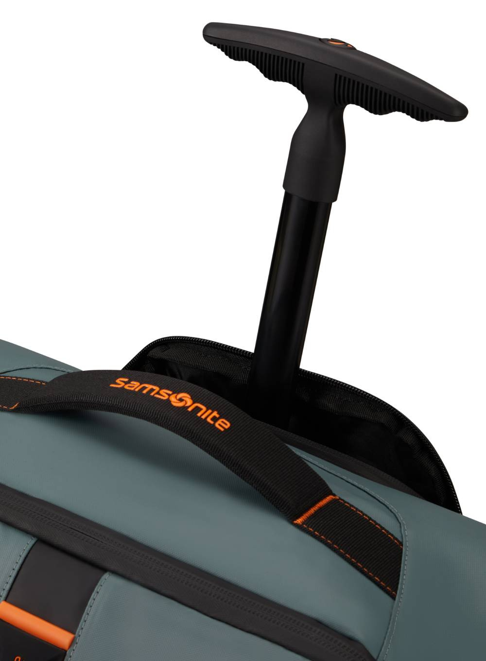 • ergonomiczny wysuwany uchwyt o pojedynczym stelażu (może być schowany w kieszonce, gdy nie jest używany)