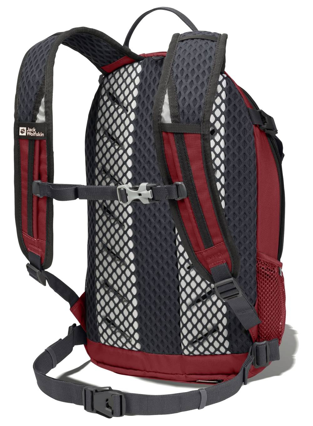 Centralny kanał wentylacyjny i otwory wentylacyjne w tylnej wyściółce chłodzą plecy podczas ruchu. Ergonomicznie ukształtowane szelki zapewniają dodatkowy komfort noszenia. Praktyczne funkcje charakterystyczne dla plecaków rowerowych obejmują: uchwyt na kask, mocowanie światła LED z przodu i zintegrowany pokrowiec przeciwdeszczowy.