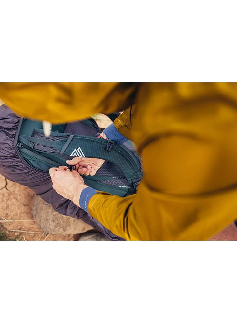 Oddychający panel Air-Cushion Mesh, składający się w ponad 90% z siatki, dba o odpowiednią wentylację, utrzymując suchość i komfort nawet w trudnych warunkach. Praktyczna kieszeń On-The-Go na szelce pozwala na szybki dostęp do najważniejszych rzeczy, takich jak Garmin inReach®, przekąsek lub okularów przeciwsłonecznych.