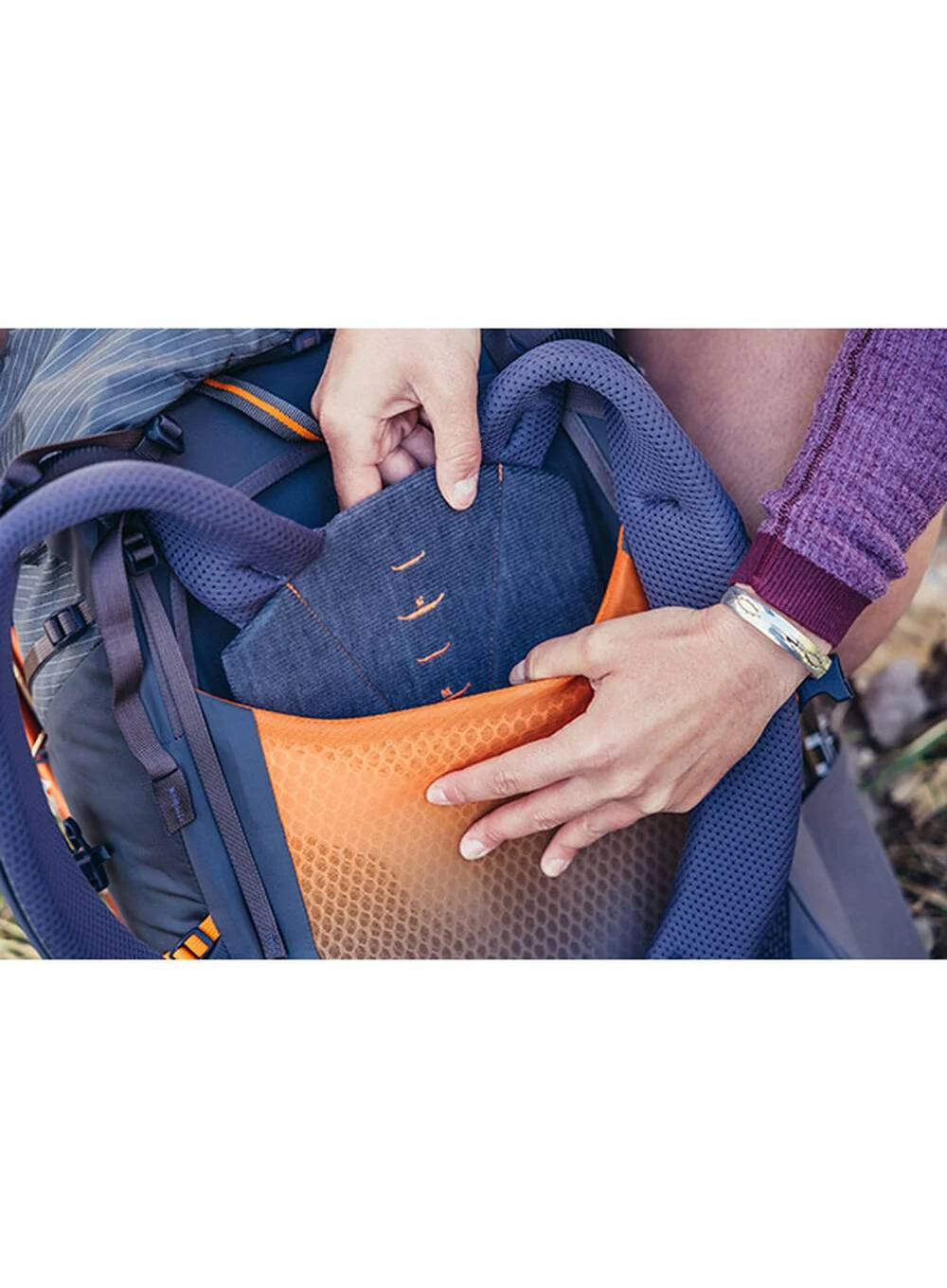 Wentylowany, podwieszany panel tylny z siatki, wyposażony w dynamiczny system dolnej części pleców Gregory FreeFloat ComfortCradle, zapewnia maksymalne dynamiczne dopasowanie i komfort.