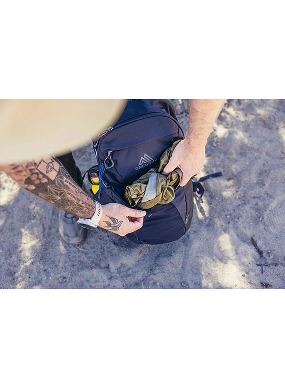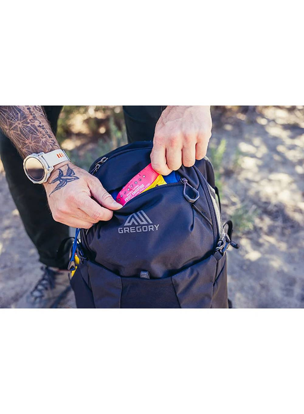 - Wewnętrzna kieszeń na bukłak z mocowaniem SpeedClip kompatybilnym z bukłakiem Gregory's Hydro (zbiornik nie jest dołączony)