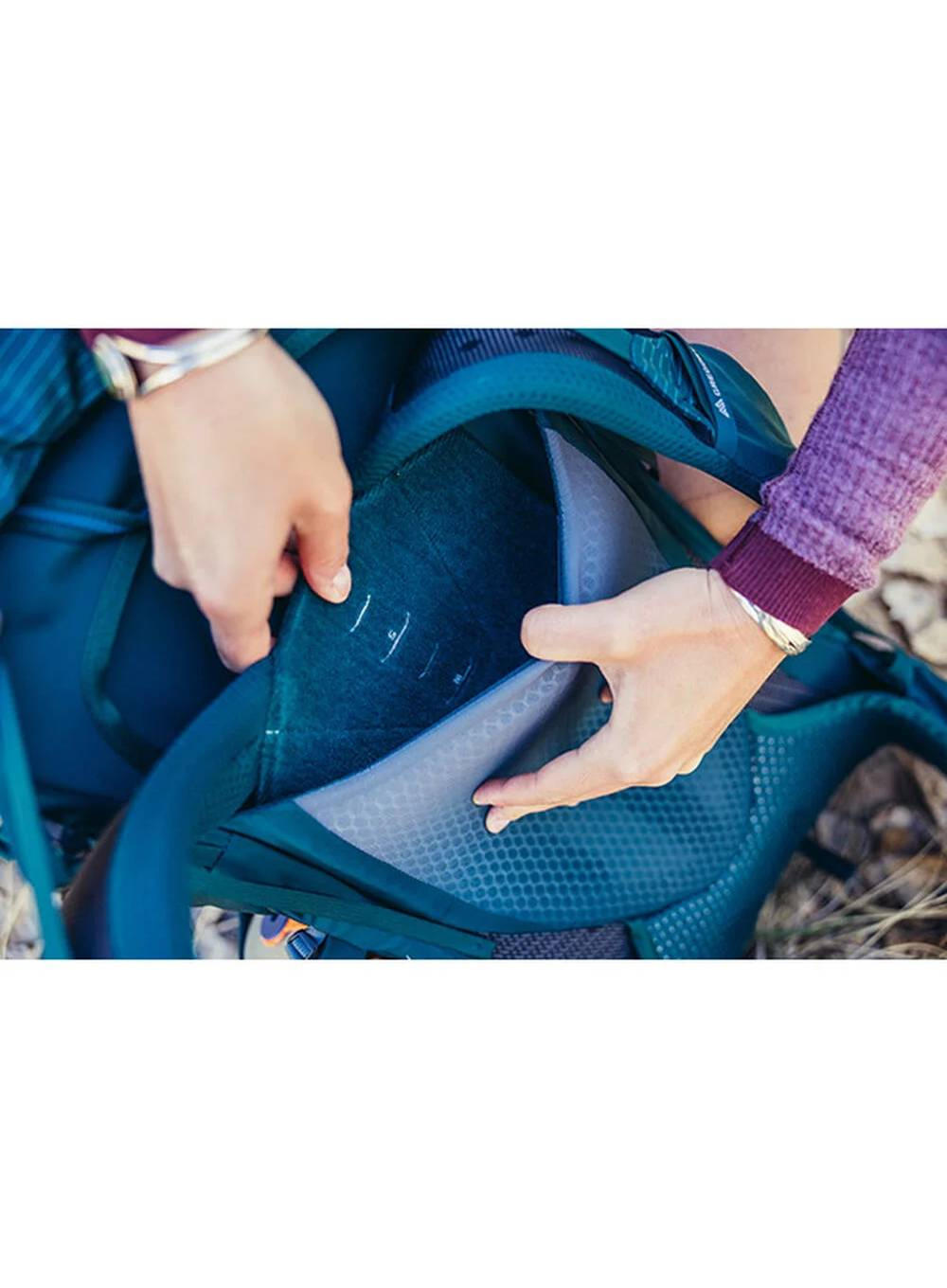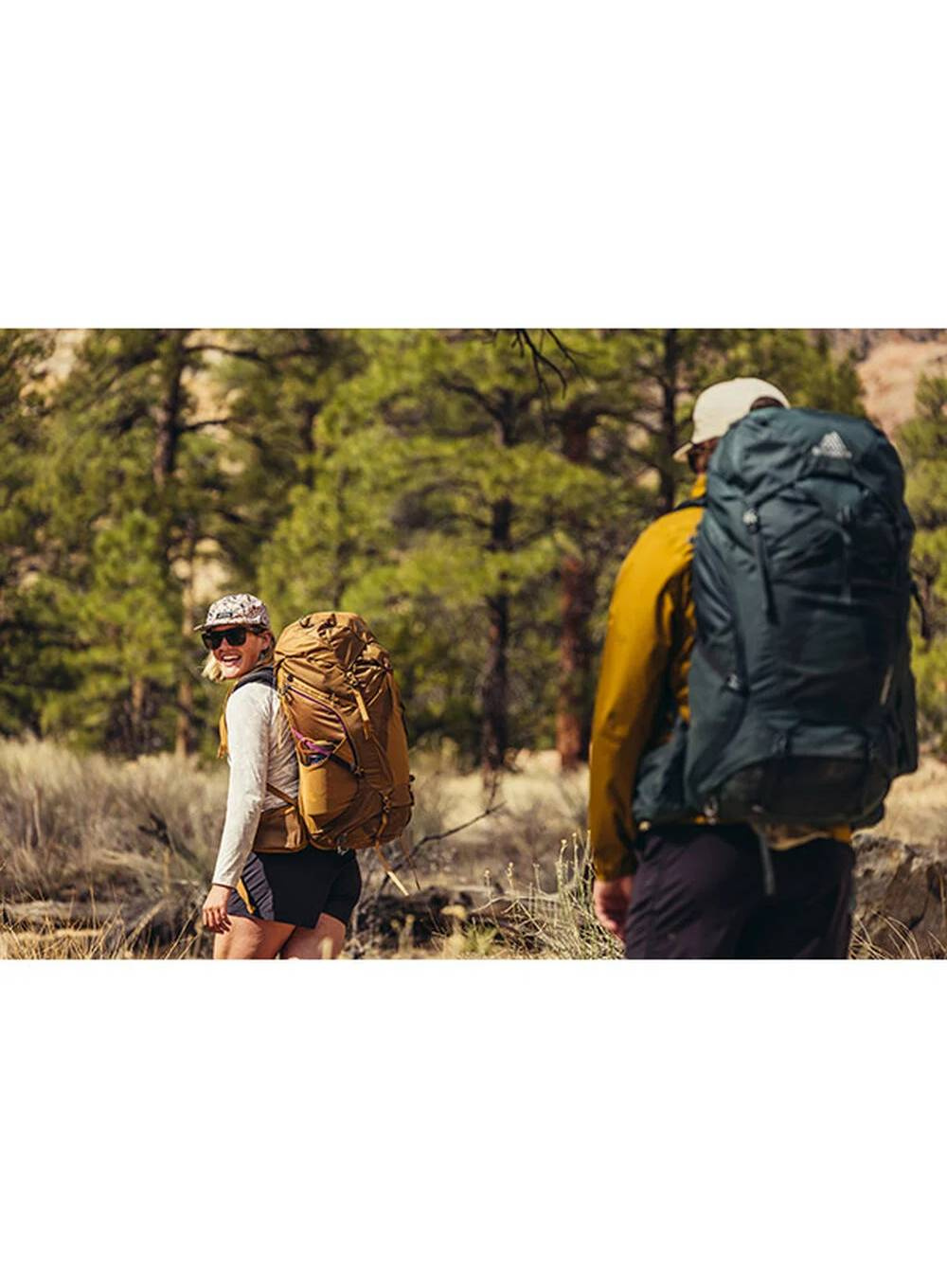 Hybrydowy system nośny z dynamicznym pasem biodrowym Gregory's FreeFloat i tylnym panelem z siatki AirCushion zapewnia komfort i przewiewność podczas wielogodzinnego wędrowania.