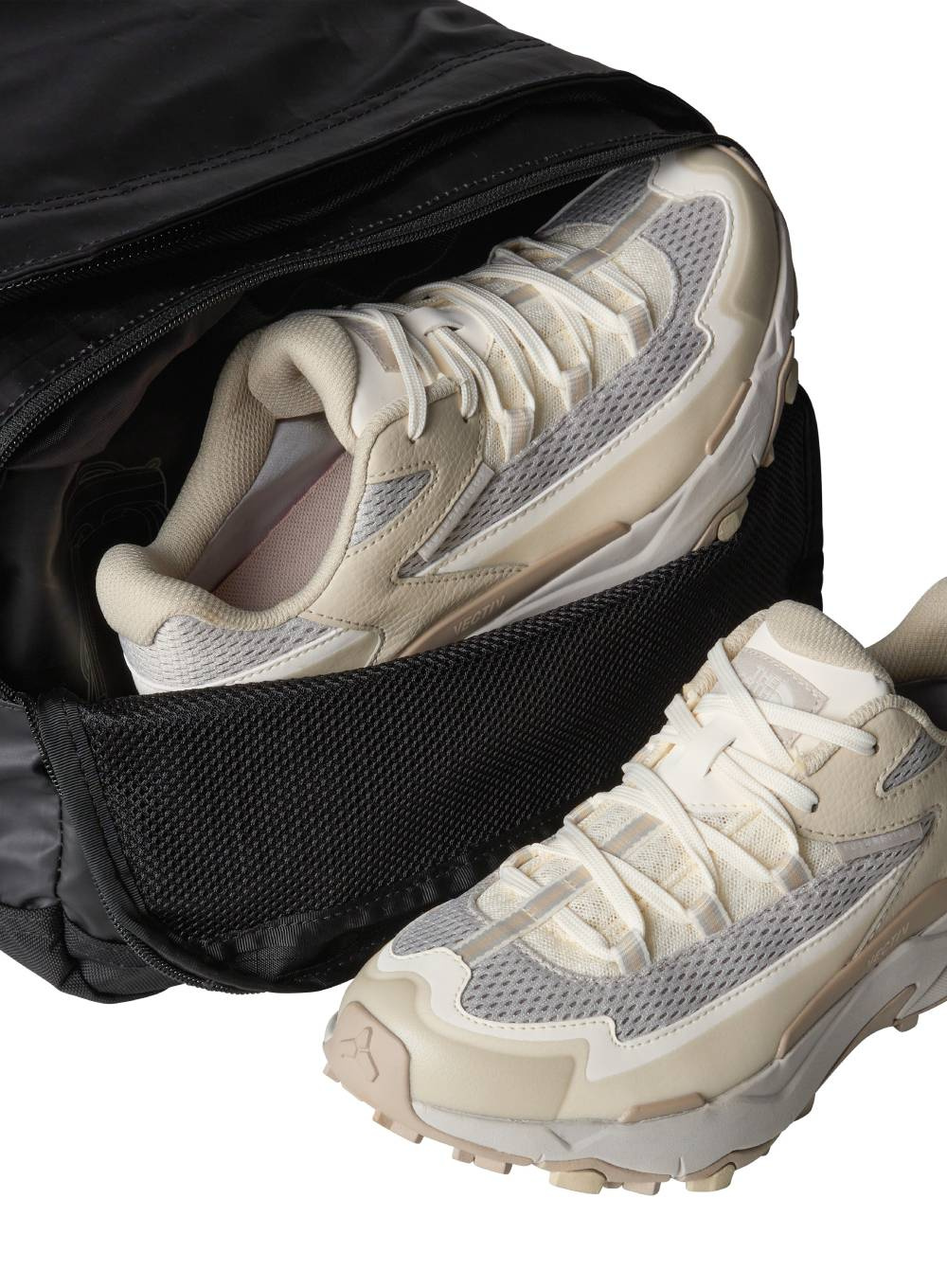 The North Face Base Camp Voyager Duffel 42 l możesz nosić jak plecak lub torbę. Ma kieszeń na laptopa lub tablet, regulowaną i wyjmowaną przegrodę w głównej części, która zdecydowanie ułatwia oddzielenie czystego od brudnego, a także - aby uniknąć frustracji grzebania - zewnętrzną kieszeń zapinaną na zamek na paszport i telefon.