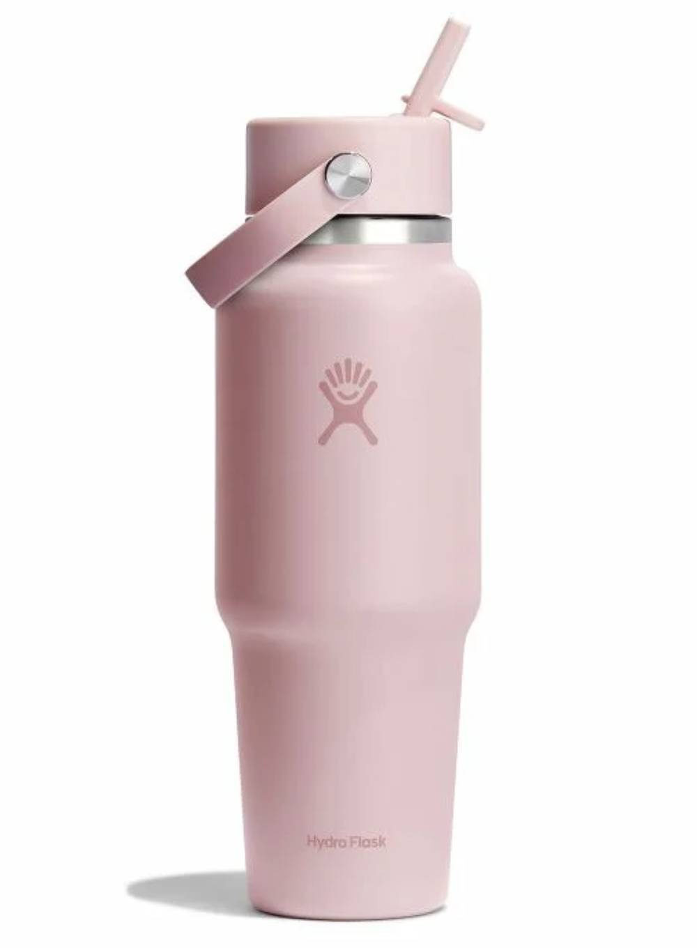 Izolowana butelka o pojemności 946 ml z szerokim wlewem i słomką Hydro Flask Wide Mouth Travel Bottle jest idealna do picia w drodze.