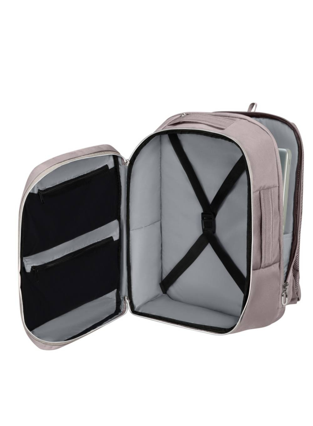• Główna komora na ubrania z pasami mocującymi i kieszeniami z siatki na mniejsze rzeczy