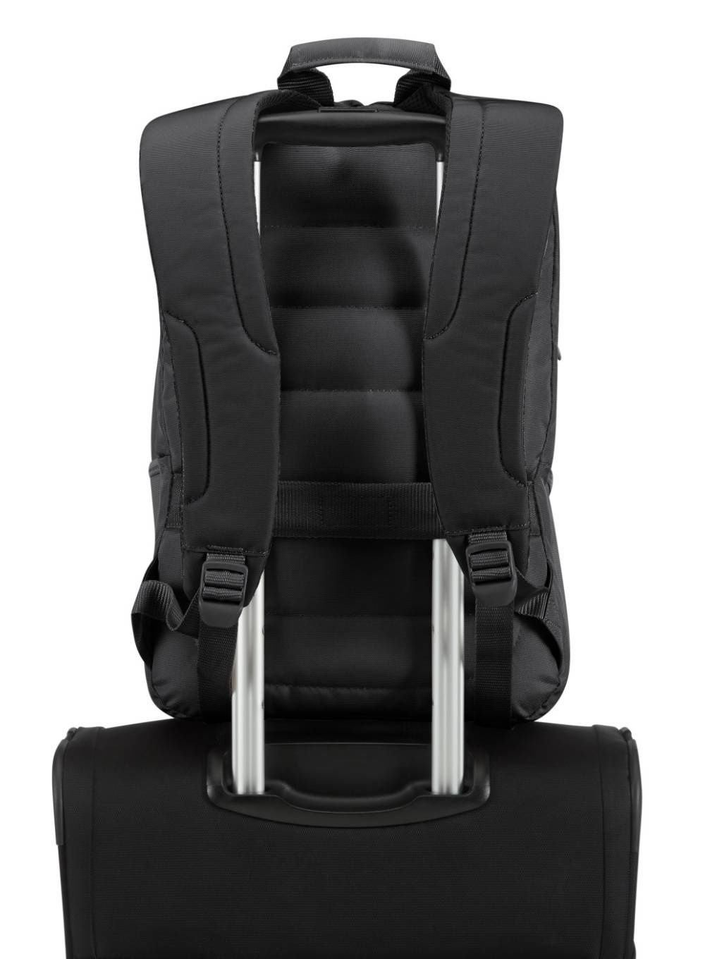 Plecak biznesowy Samsonite Guardit Classy zapewnia zawsze przyjemną podróż. W transporcie publicznym można go trzymać w dłoni za mały wyściełany uchwyt. Aby wybrać się na lunch biznesowy, możesz nosić go na plecach, korzystając z wyściełanego tyłu i ergonomicznych regulowanych pasków ramiennych. Podczas podróży można go przymocować do uchwytu bagażu na kółkach za pomocą tylnej pętli. Zapięcia na zamek błyskawiczny, wyściełany spód i wewnętrzna podszewka pozwalają zadbać o zawartość w każdą pogodę.