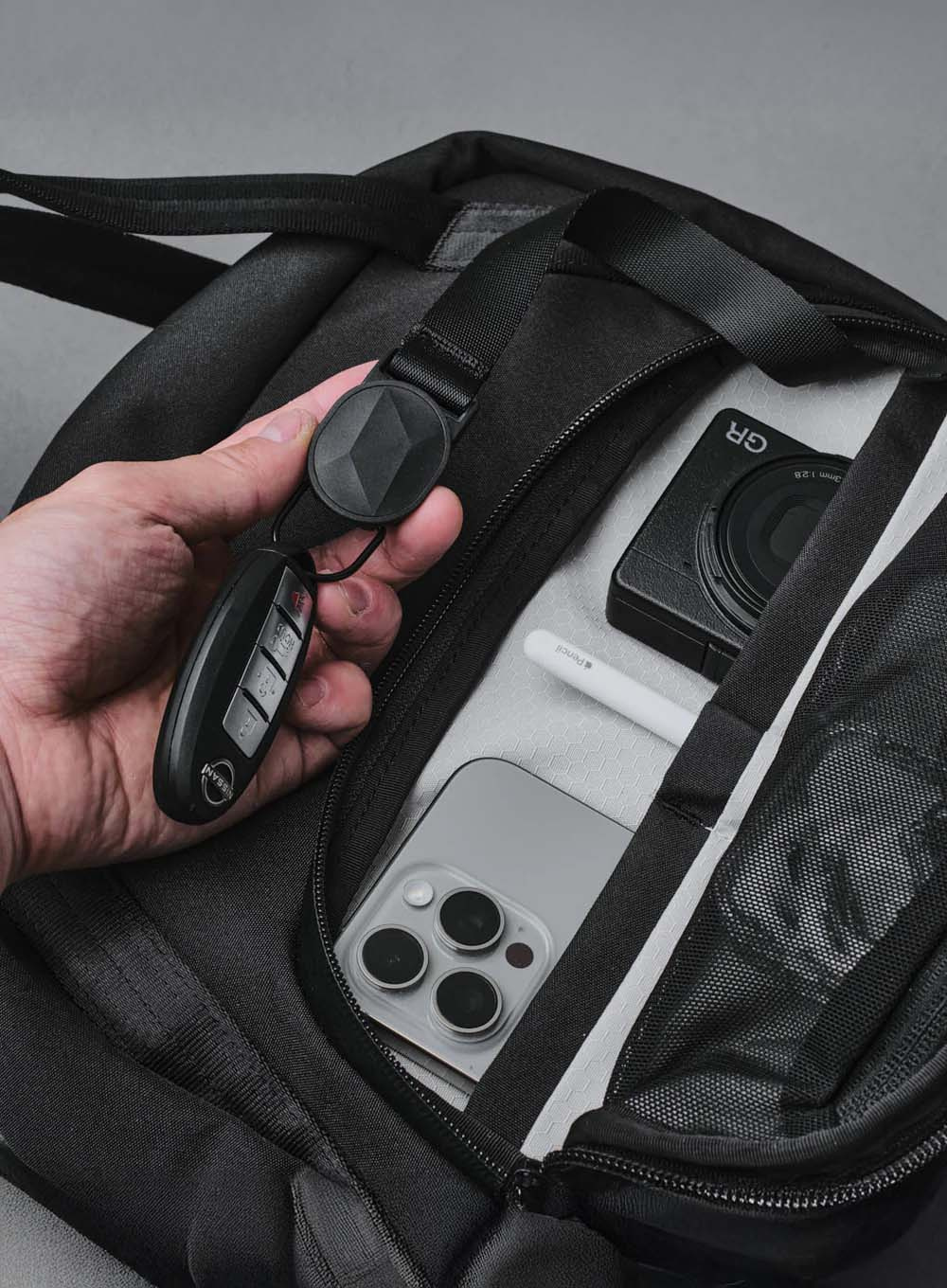 Pojemne wnętrze z dedykowanym miejscem na 16” laptopa oraz licznymi kieszeniami pomaga utrzymać porządek w Twoich rzeczach. Przednia kieszeń z magnetycznym mocowaniem MOD Key Tether zapewnia szybki dostęp do kluczy i drobiazgów. Boczna kieszeń idealnie nadaje się na butelkę wody lub parasol.