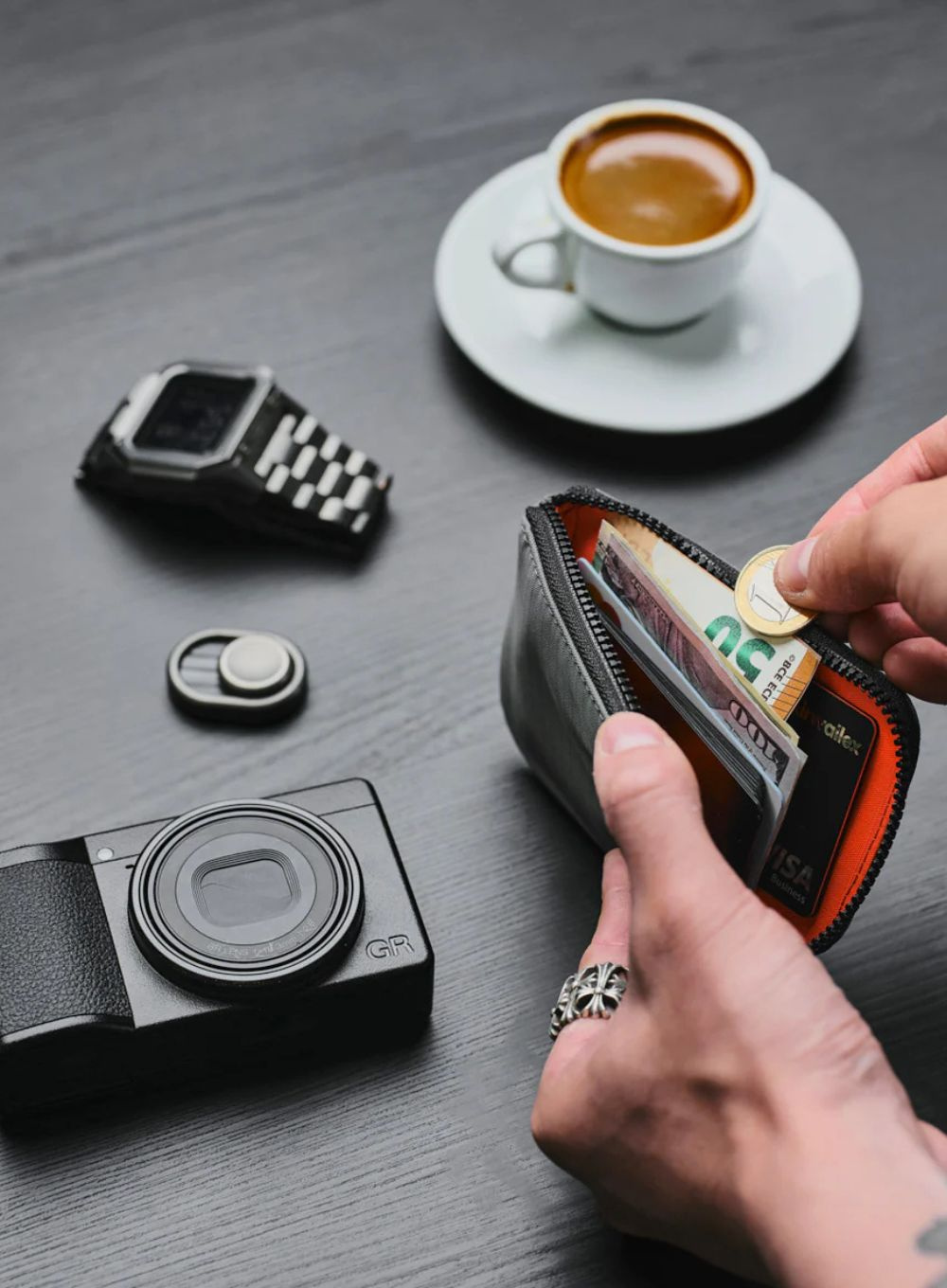 Największą zaletą Zip Card Pouch jest jego kompatybilność z ekosystemem HUB - można go przypiąć do paska, plecaka lub torby, aby zawsze mieć najważniejsze rzeczy pod ręką.