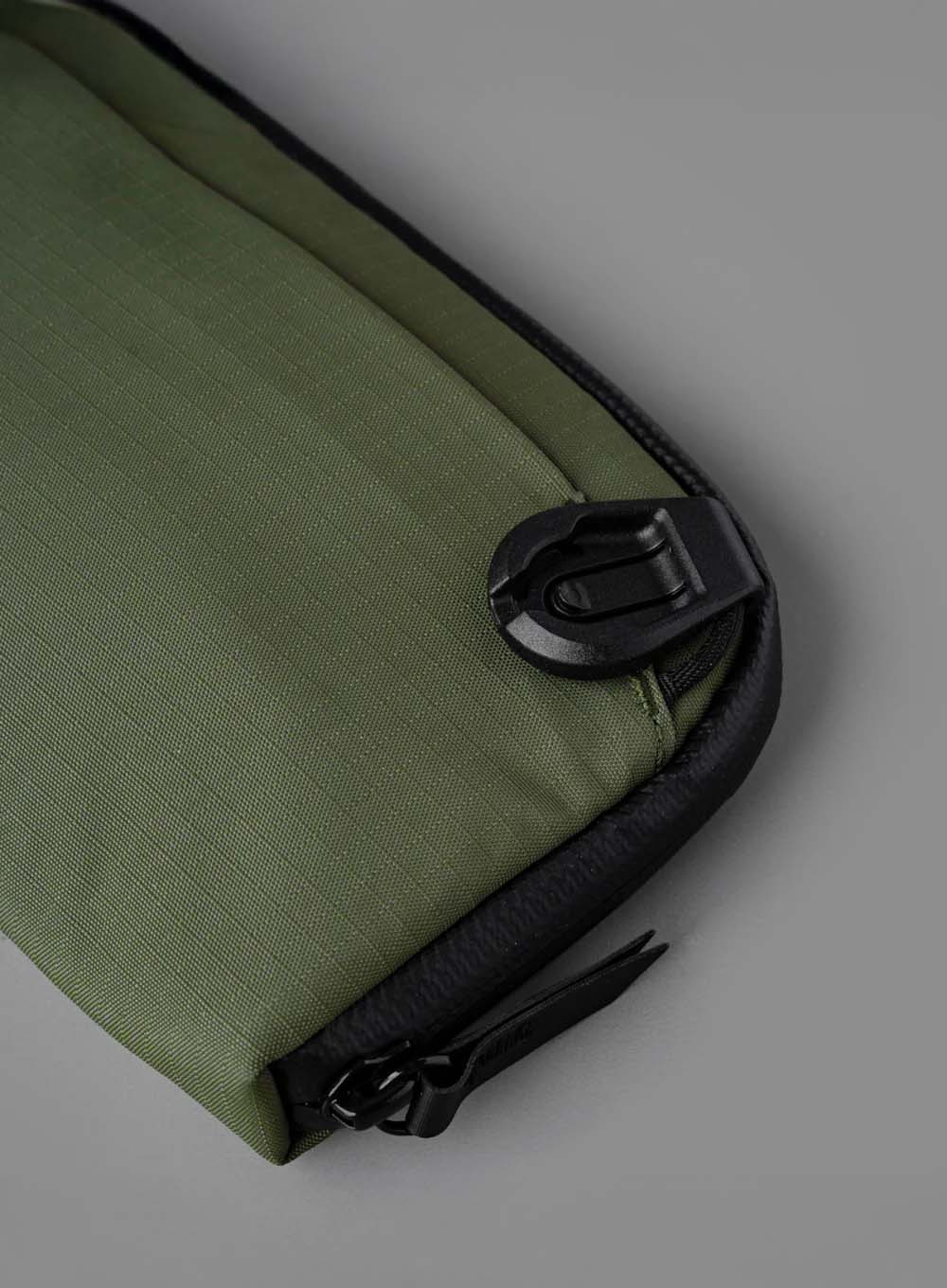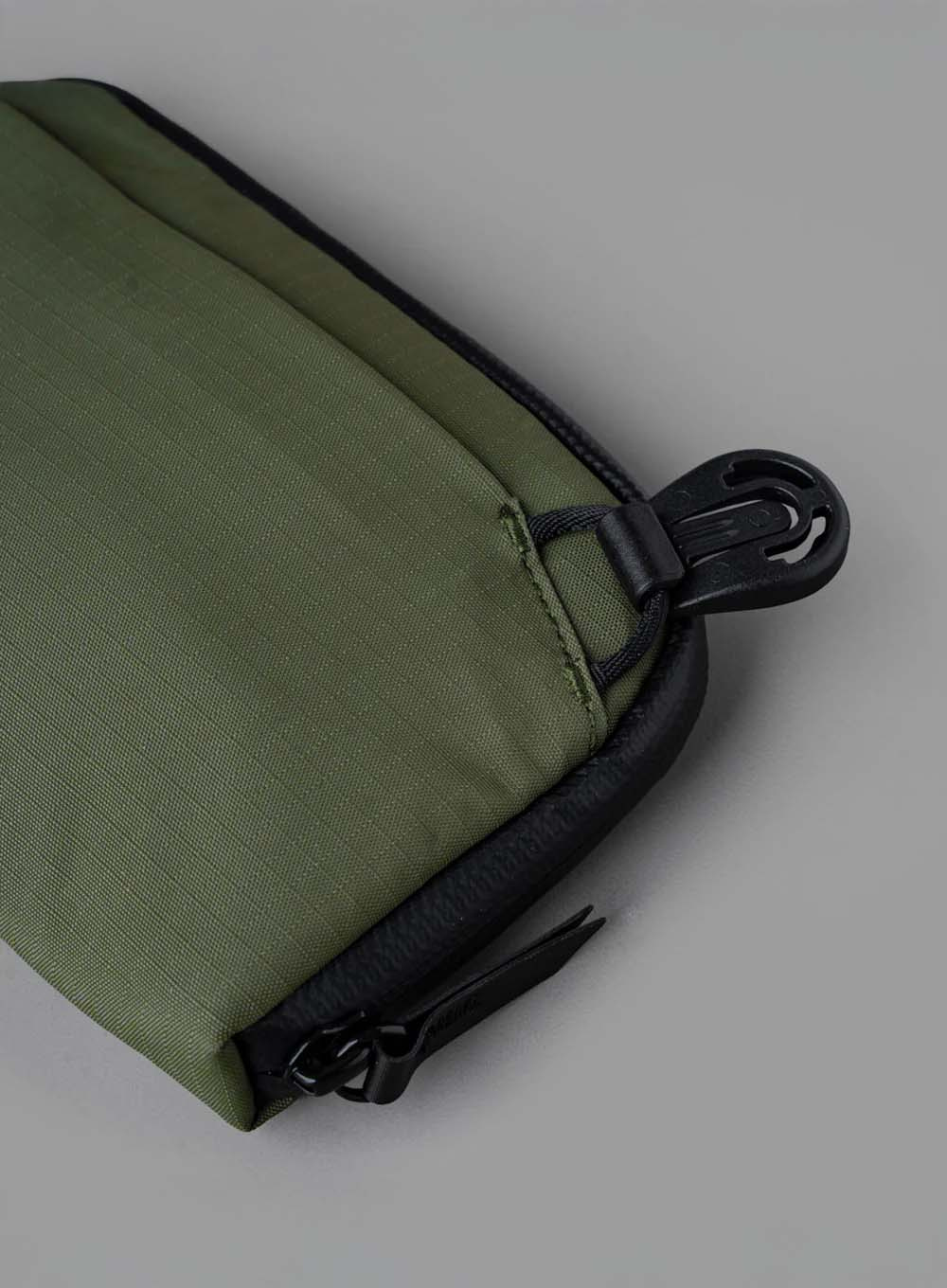 Wykonany z wytrzymałej, wodoodpornej tkaniny z recyklingu Axoflux oraz wyposażony w szczelne zamki YKK Aquaguard, organizer jest odporny na wilgoć i niesprzyjające warunki atmosferyczne, zapewniając bezpieczeństwo przechowywanym przedmiotom.