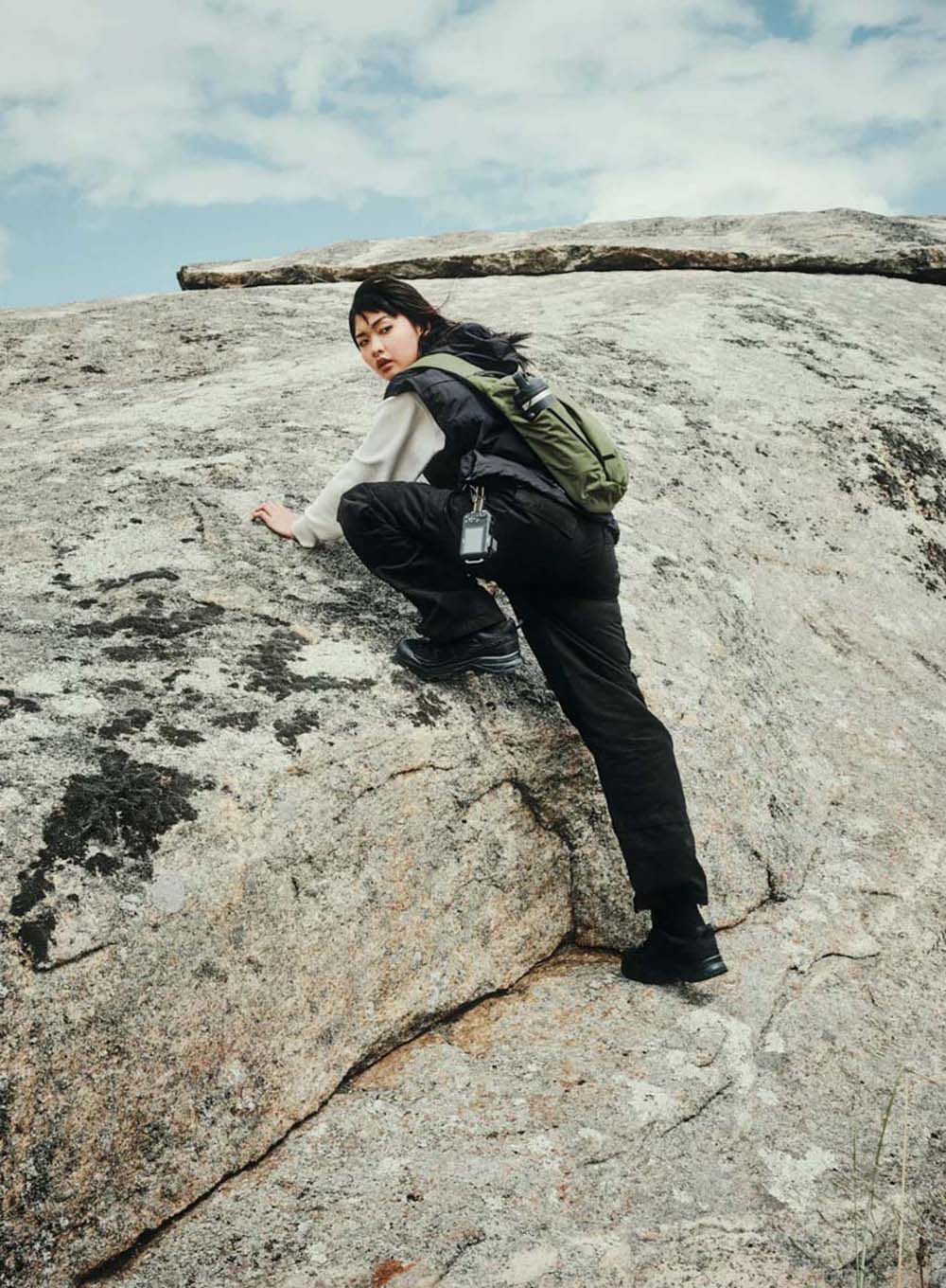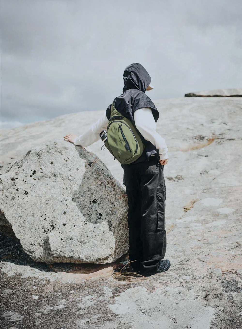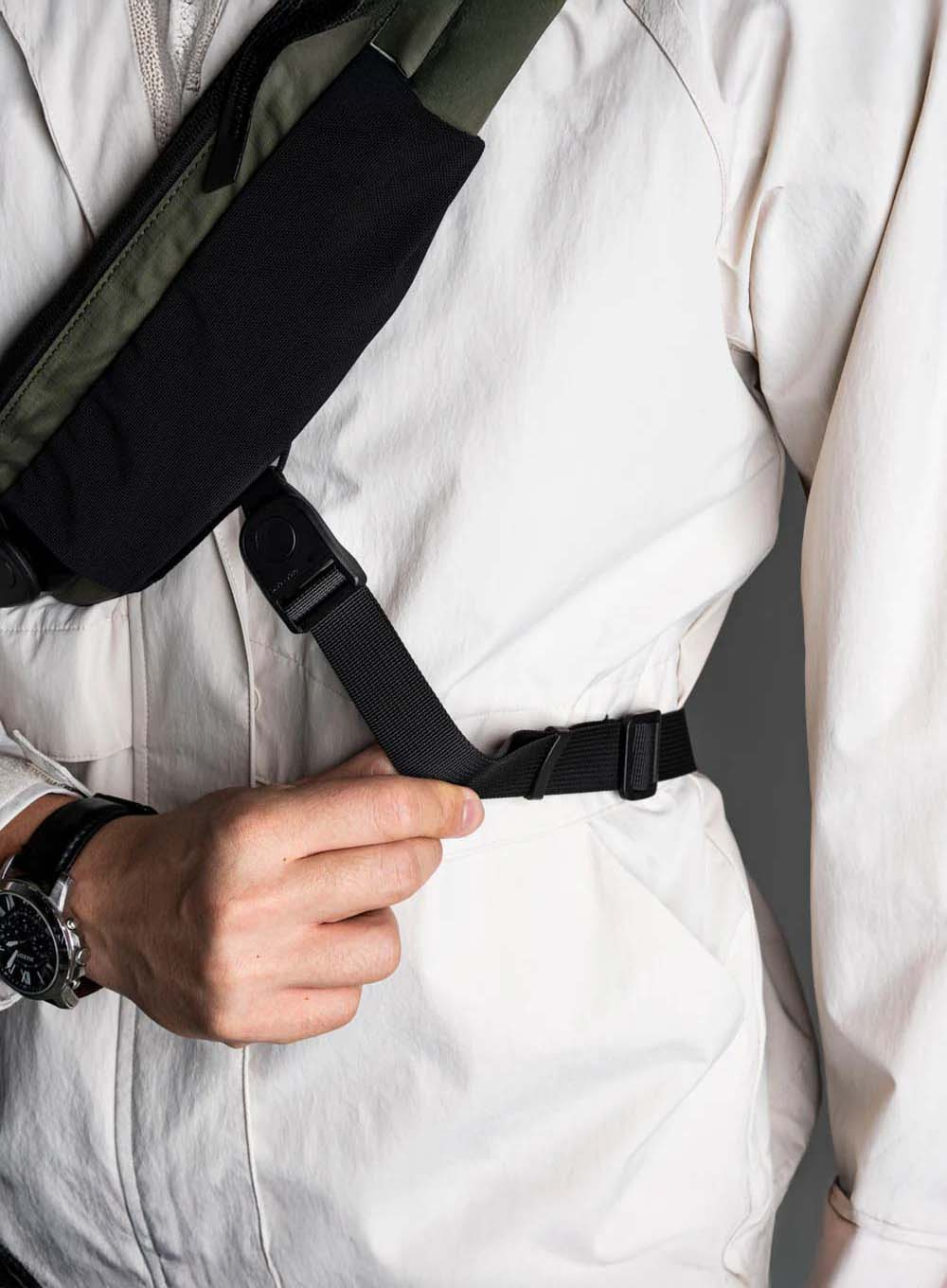 - Łatwo dostępna kieszeń na pasku na telefon z zamknięciem na zamek błyskawiczny