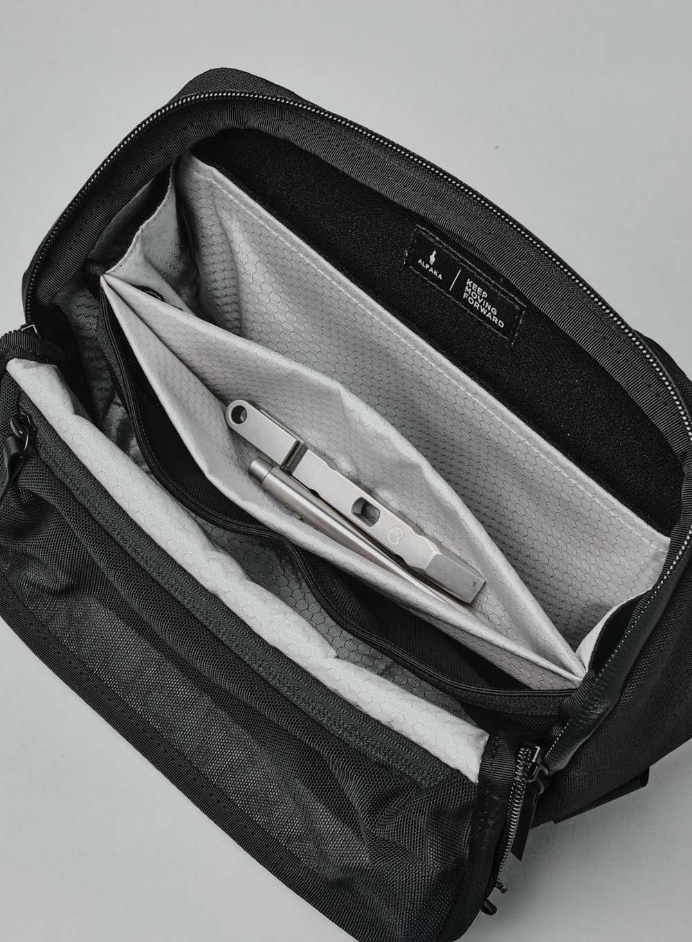 Potrzebujesz torby na co dzień? Po przypięciu wyściełanego pasa ramiennego Vertex Pouch staje się wygodną torbą typu sling, idealną na miejskie przygody i podróże.