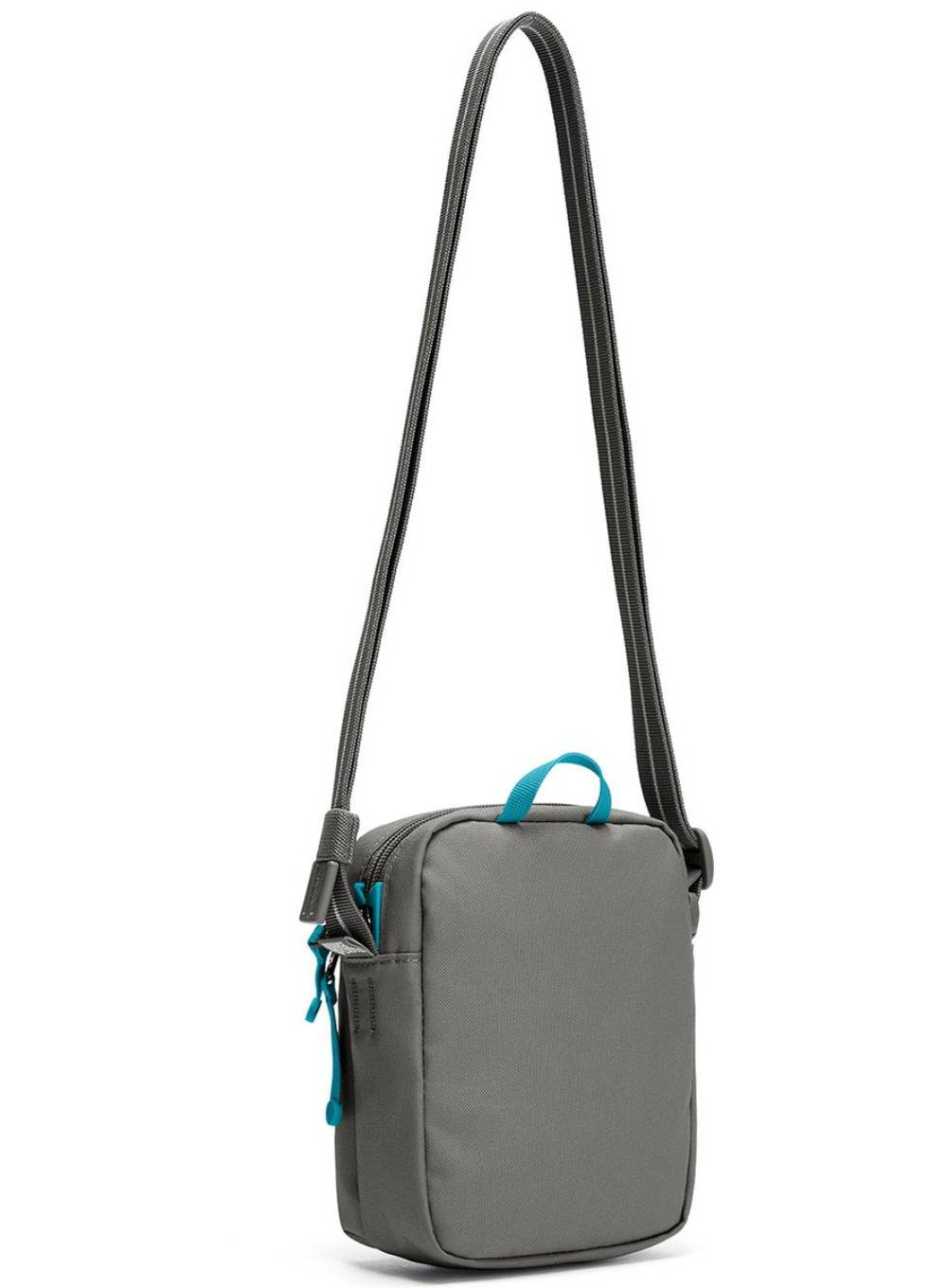 Kompaktowa torba na ramię Pacsafe GO Mikro Crossbody o pojemności 1,5 l to najlepszy antykradzieżowy niezbędnik na dokumenty, portfel, telefon oraz inne gadżety w mieście, na festiwalach i w podróży.