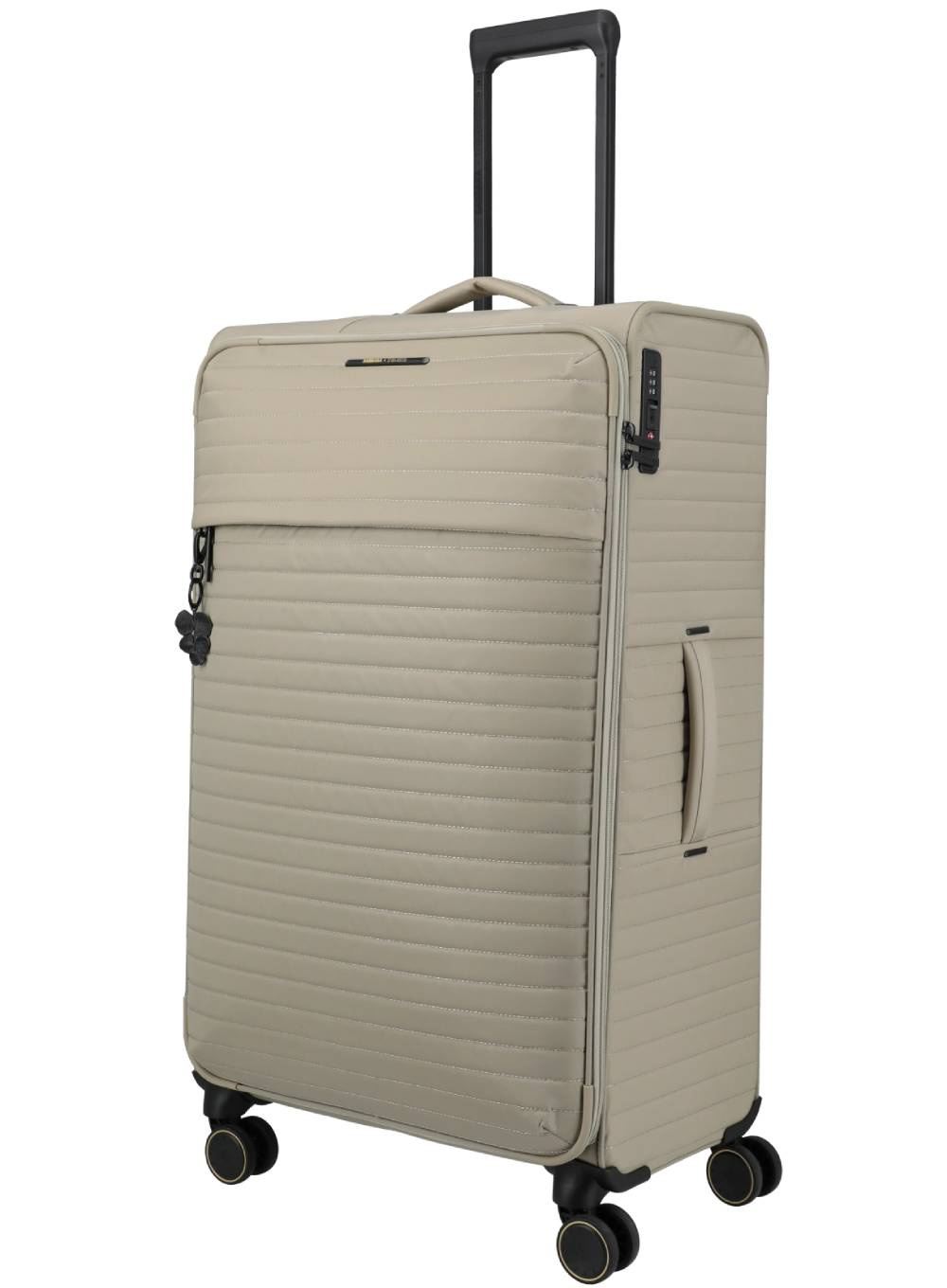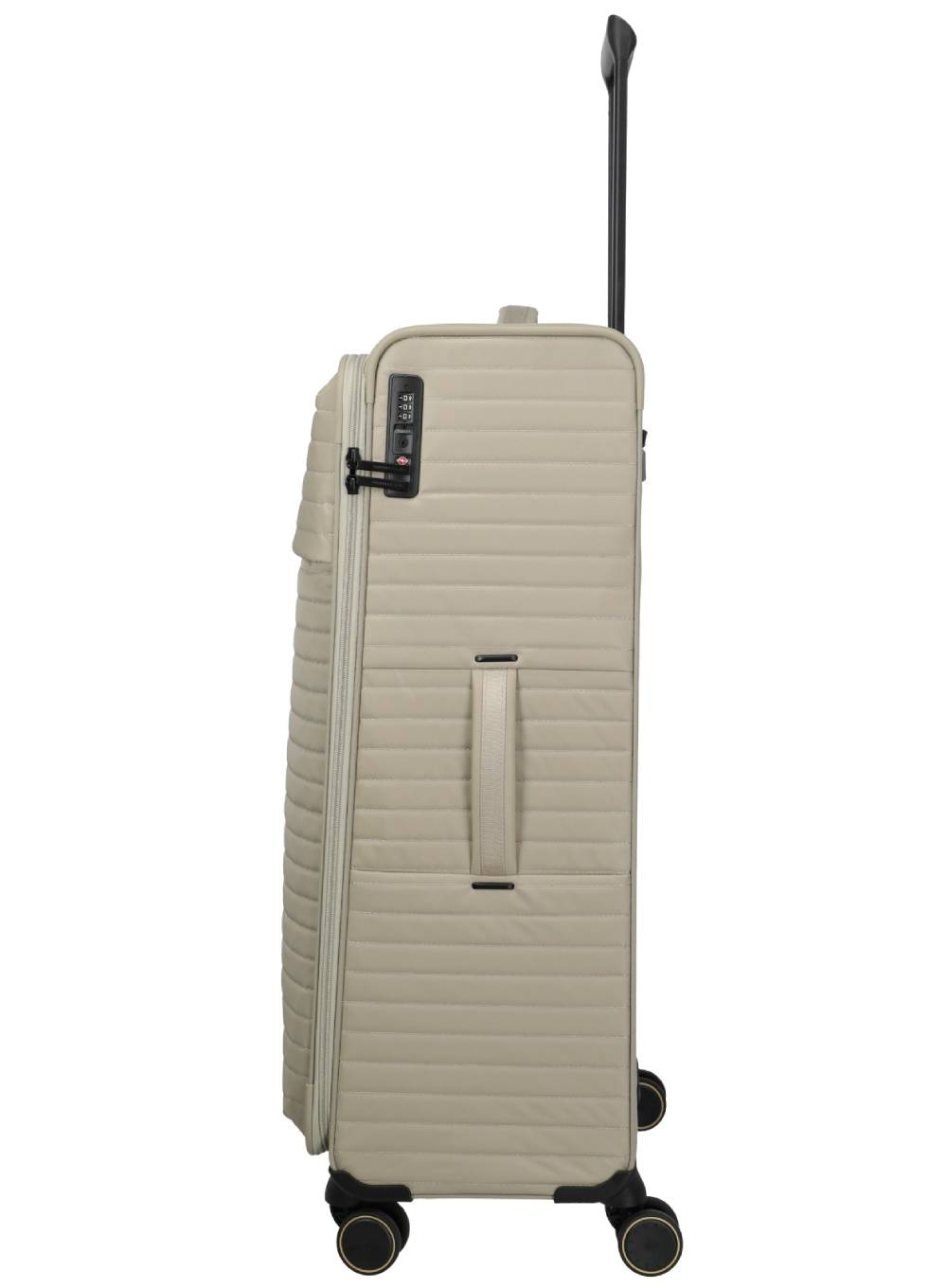 Z zewnątrz zachwyca subtelnym, kobiecym designem - złote metalowe akcenty, połyskujące pasy mocujące i ozdobny brelok sprawiają, że model ten emanuje elegancją. Dodatkowe zabezpieczenie w postaci zintegrowanego zamka TSA gwarantuje bezpieczną podróż samolotem, nawet z bagażem rejestrowanym.