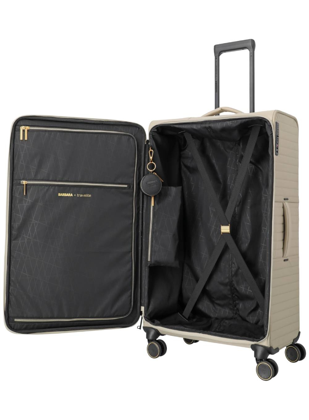 Duża walizka Travelite Barbara Stepp z kolekcji stworzonej we współpracy z marką BARBARA to kwintesencja nowoczesnego podróżowania - komfortowego, stylowego i przyjaznego środowisku. Wykonana w całości z recyklingowanego nylonu i poliestru, łączy wytrzymałość z ekologiczną świadomością.