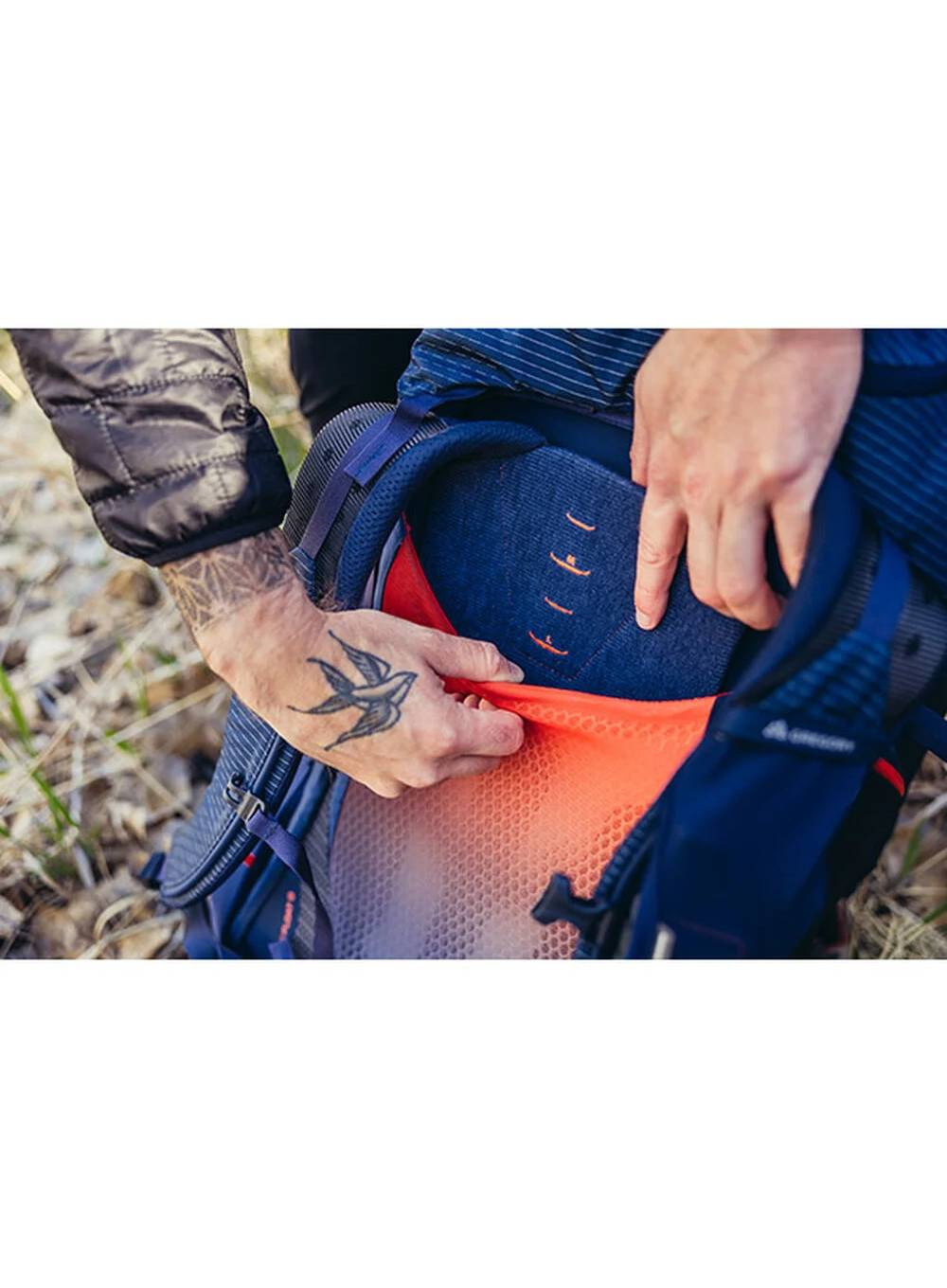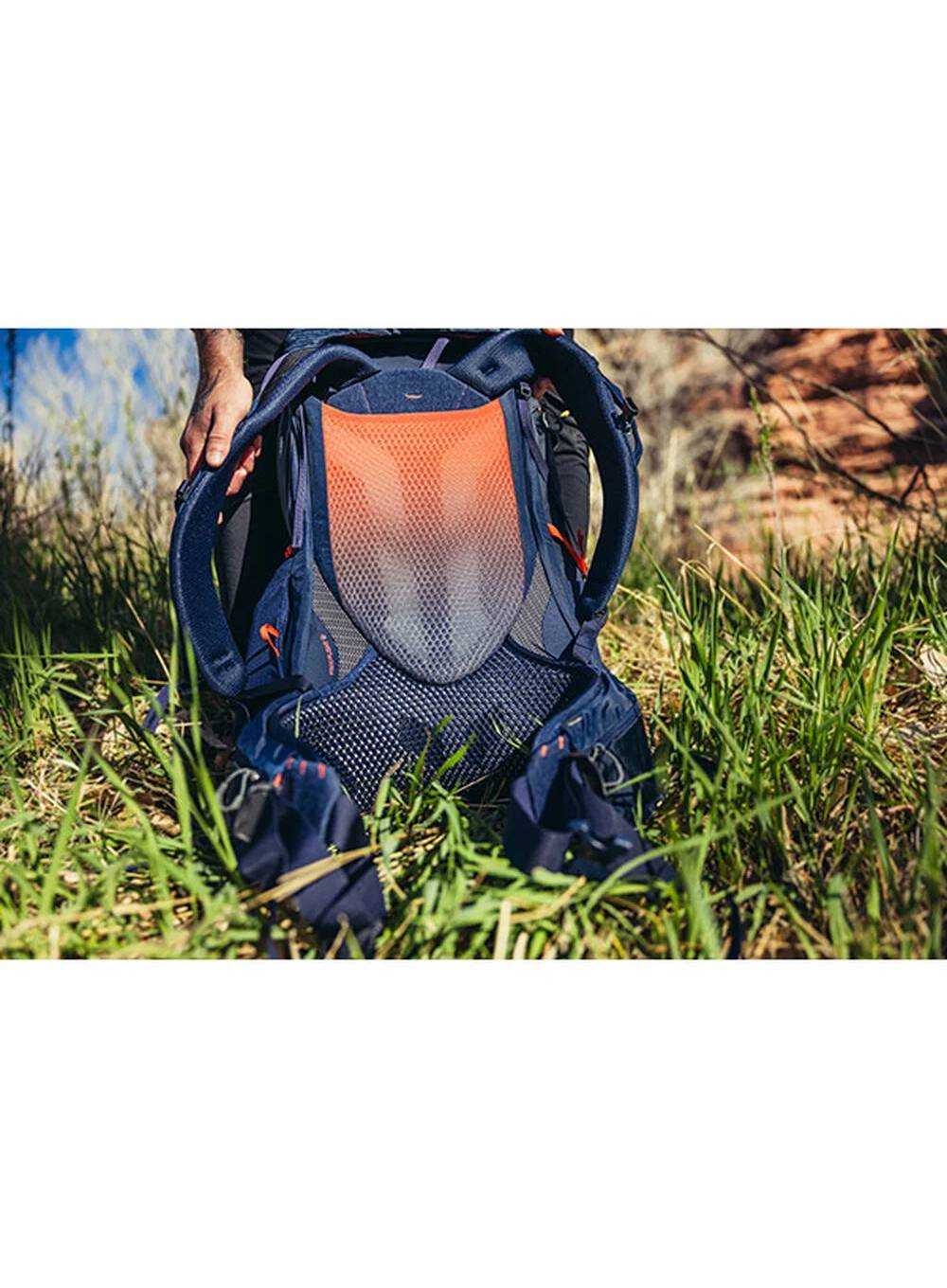 Za wentylację odpowiada oddychający panel AirCushion Mesh, który składa się w ponad 90% z siatki, co skutecznie redukuje potliwość i podnosi komfort użytkowania. Praktyczna kieszeń On-The-Go na szelce umożliwia szybki dostęp do najważniejszych rzeczy, takich jak Garmin inReach®, okularów przeciwsłonecznych czy przekąsek.