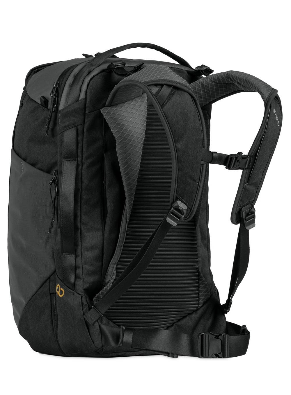 Wykonany z innowacyjnej tkaniny CERO™ - odpornej na przetarcia i wodę, a jednocześnie w pełni pochodzącej z recyklingu - plecak zapewnia solidną ochronę zawartości nawet w trudnych warunkach pogodowych. Zamiast tradycyjnych pianek zastosowano materiał CCubed™, który skutecznie odprowadza wilgoć i ciepło, zapewniając komfort noszenia nawet w upalne dni.