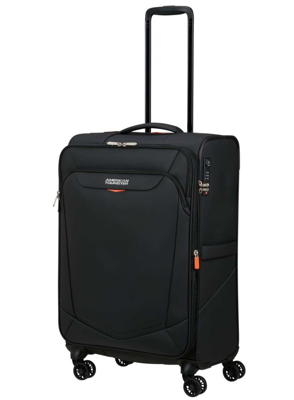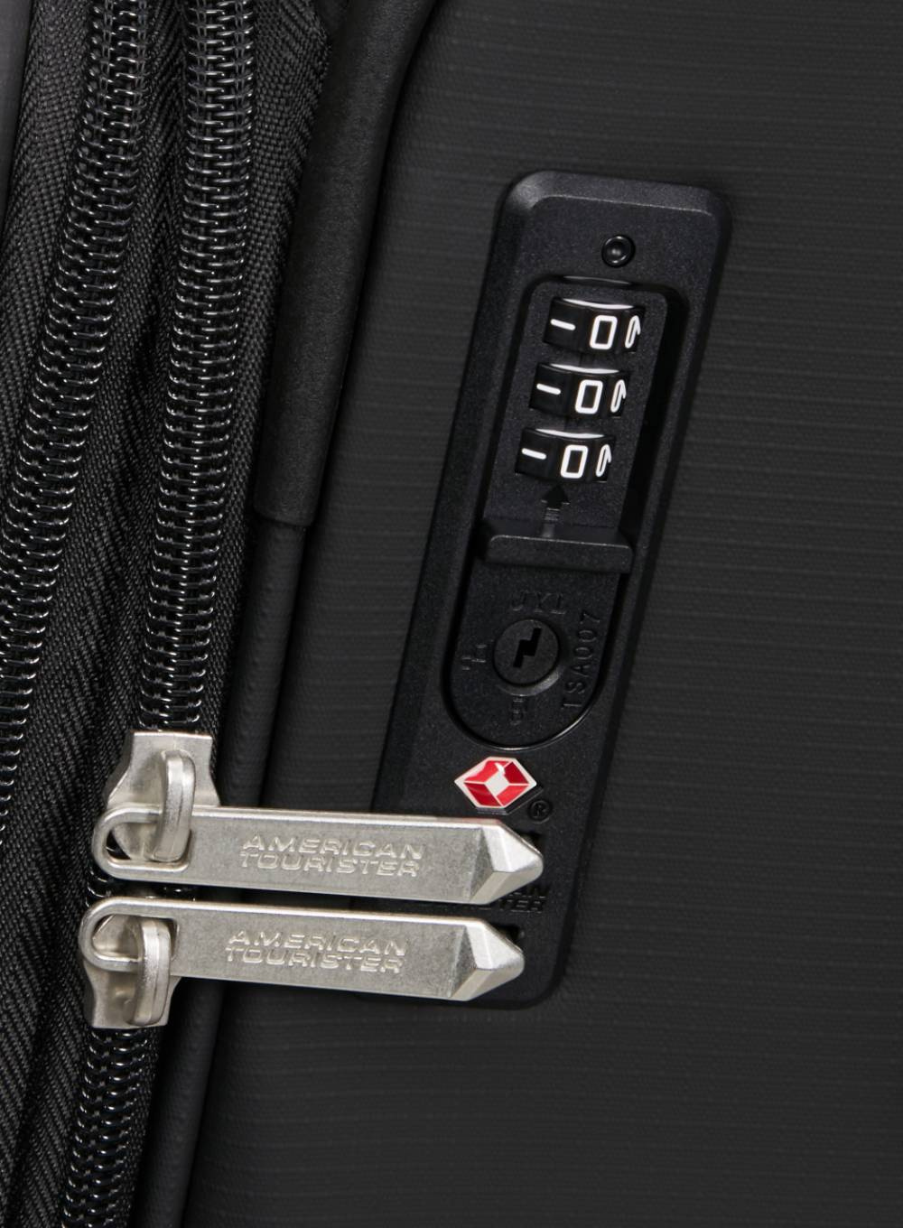 Średnia walizka American Tourister SummerRide posiada wytrzymałe zamki błyskawiczne i zamek szyfrowy TSA, który odstrasza kieszonkowców przed kradzieżą.