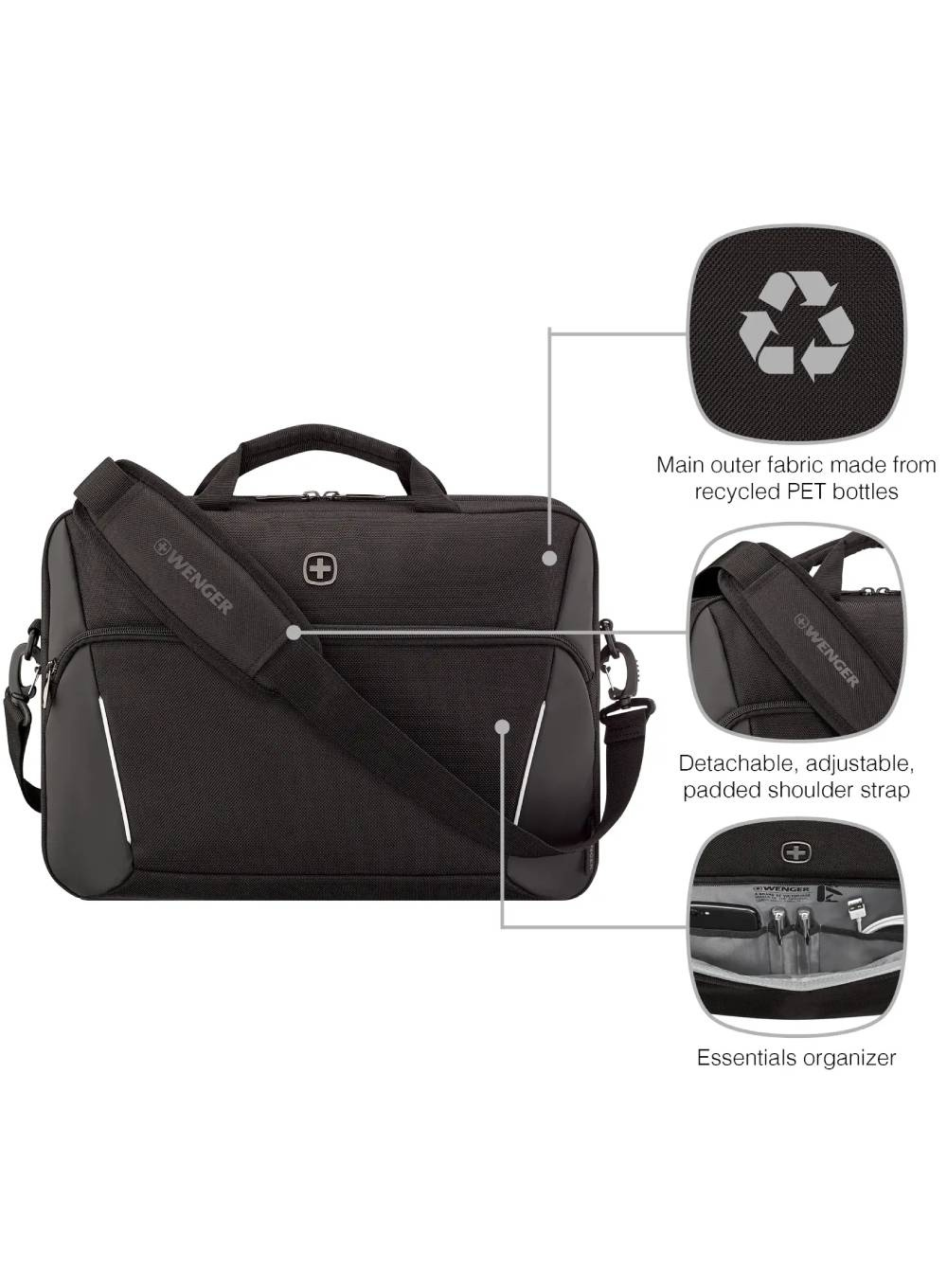 Wenger XE Compact Brief 16 to kompaktowa i stylowa torba na laptopa do 16", stworzona z materiałów z recyklingu. Wyposażona w kieszeń na tablet, organizer na akcesoria oraz pasek do mocowania na walizce - idealna do codziennego użytku i podróży.
