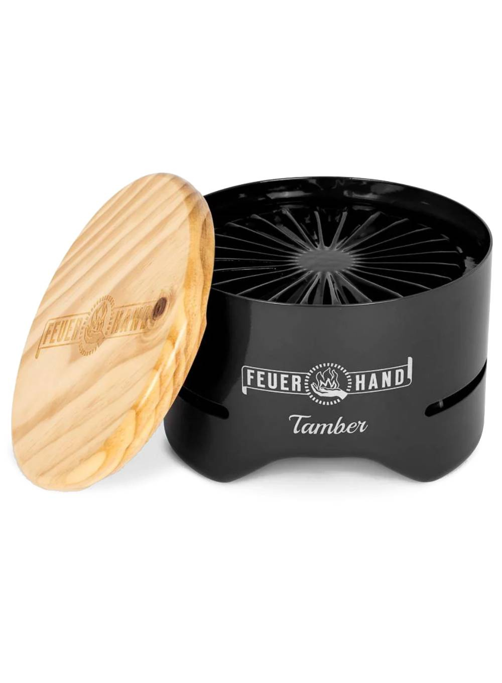 Feuerhand Tamber to elegancki, kompaktowy grill stołowy, który idealnie sprawdzi się podczas kameralnych spotkań przy posiłku. Dzięki niewielkim rozmiarom i przemyślanej konstrukcji pozwala cieszyć się wyjątkowym smakiem grillowanych potraw.