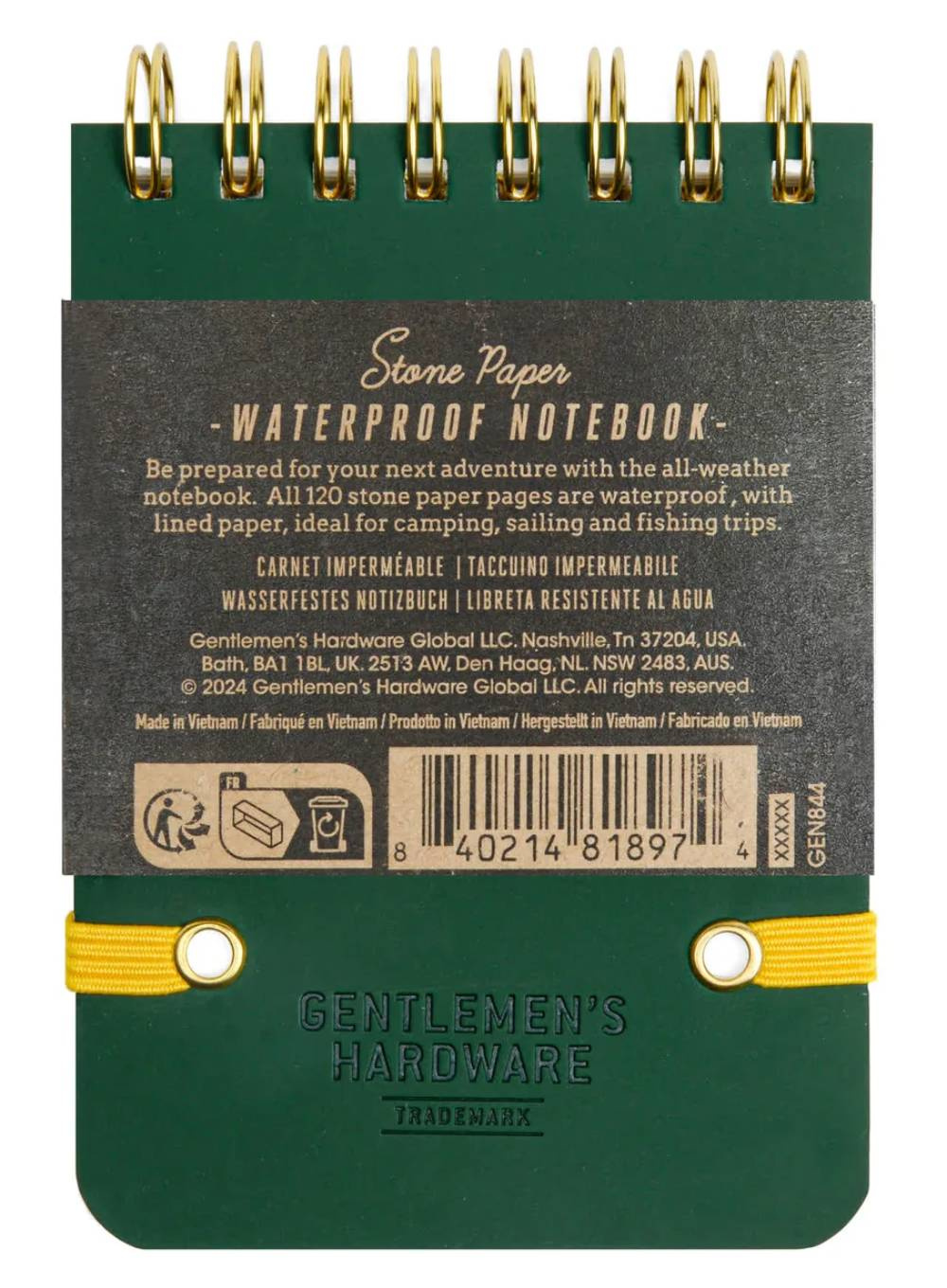 Kieszonkowy wodoodporny notes od Gentlemen's Hardware to niezawodny towarzysz każdej przygody - trwały, kompaktowy i gotowy na każde warunki pogodowe.